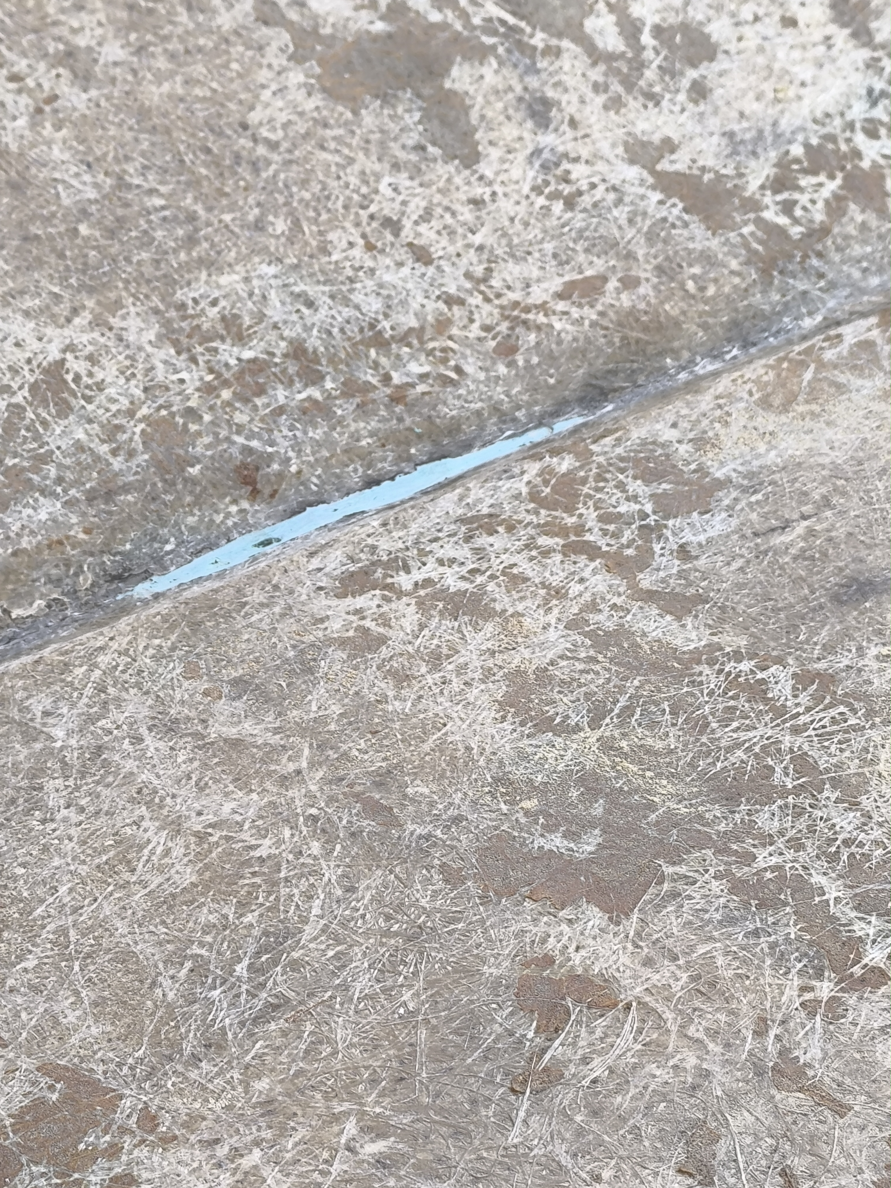 3 photos qui montrent le sillon central ou la mousse gorgée d'eau est restée pendant longtemps ,je vais passer 2 couches de mat avant la pose de la mousse, faut-il mettre du mastic fibré dans se sillon ou directement le mat ? J'ai creusé un peu en ponçant pour enlever de la fibre pas belle !!!