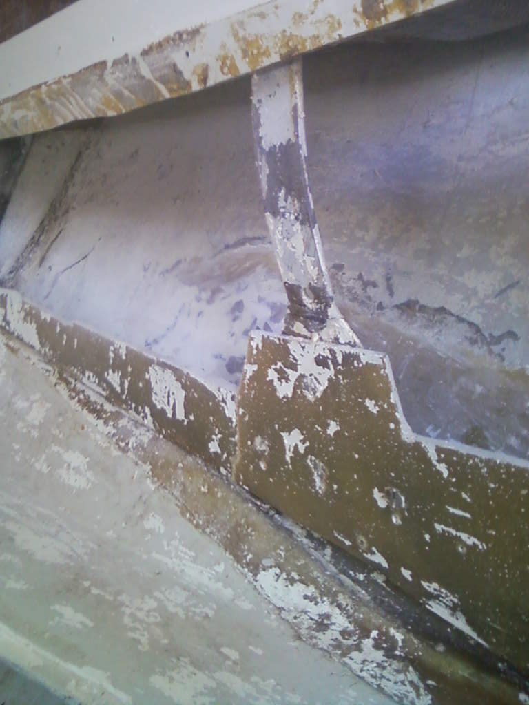 Oui pour stratifier dans la gorge, mais il faudrait quand même réparer auparavant en venant re stratifier ce "longeron" fissuré: meulage, mat, roving, mat, roving, mat et ainsi de suite jusqu'à la moitié de l'épaisseur actuelle.