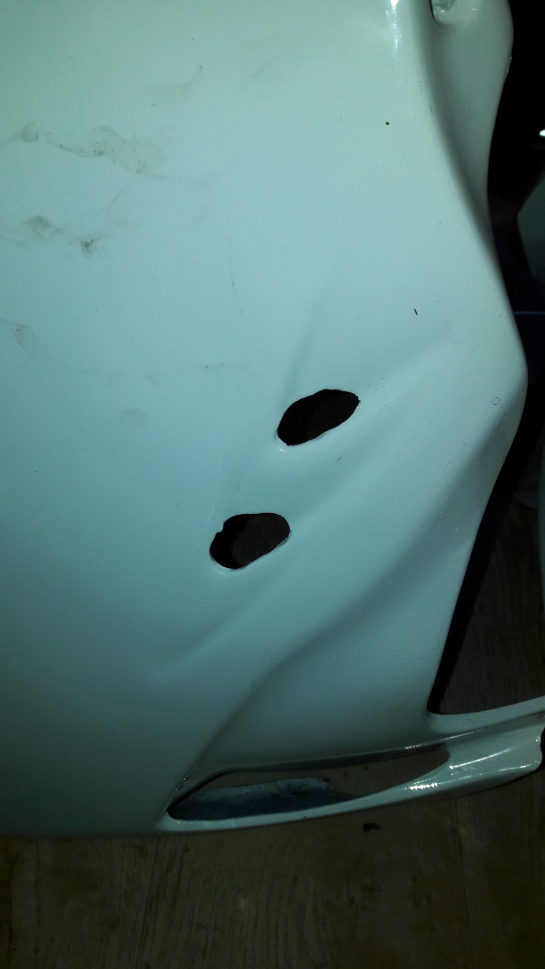 Tout d'abord, des trous dans le sabot, je pensais poncer inter/exter et ensuite boucher avec résine polyester et 2 couches mat 300gr et finir avec 1 couche mat 100gr et mastic à l'extérieur ?