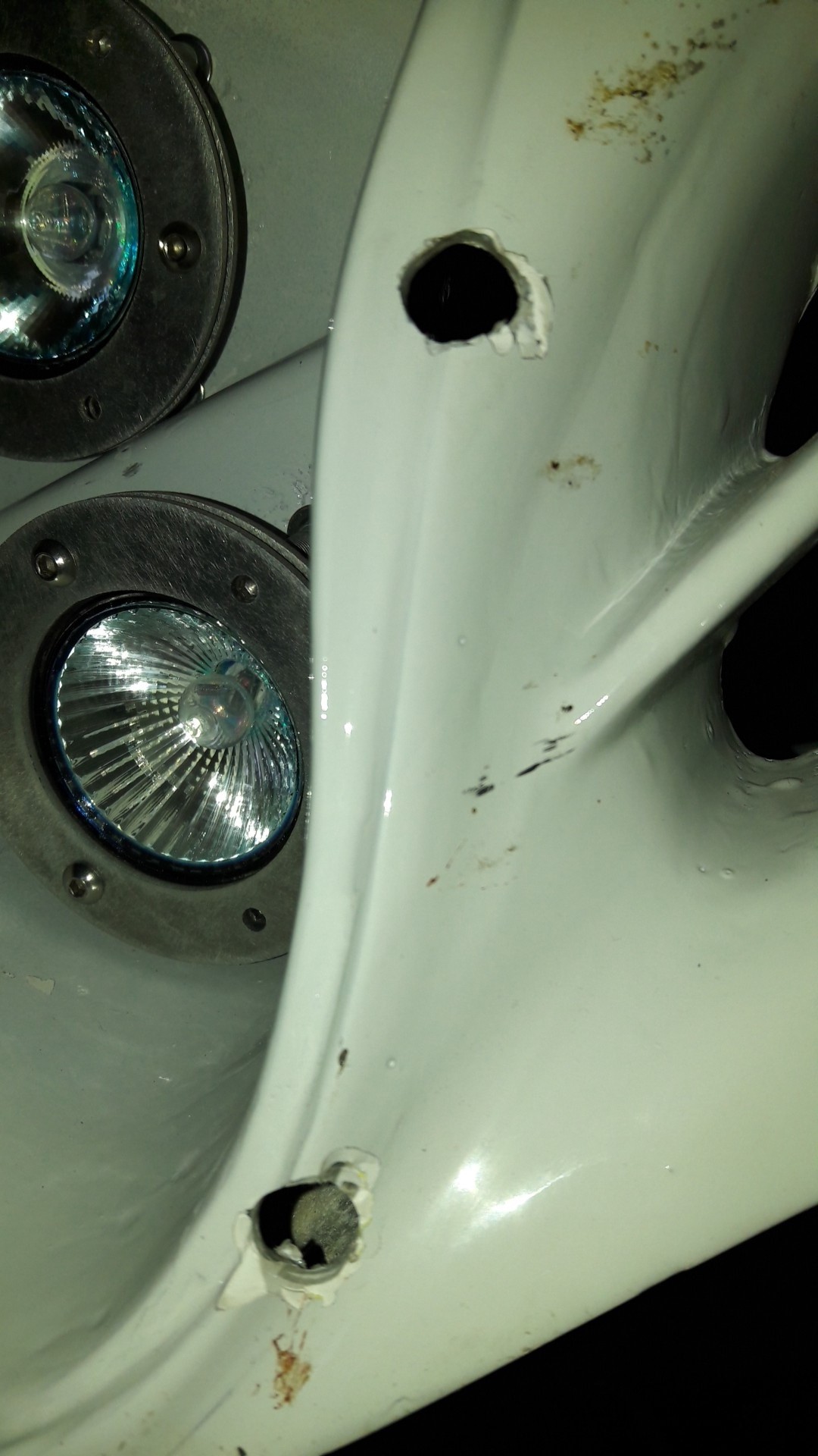 Pour les le contours des trous de fixation de la lunette de phare, je ne vois pas de solution à part mastic ?