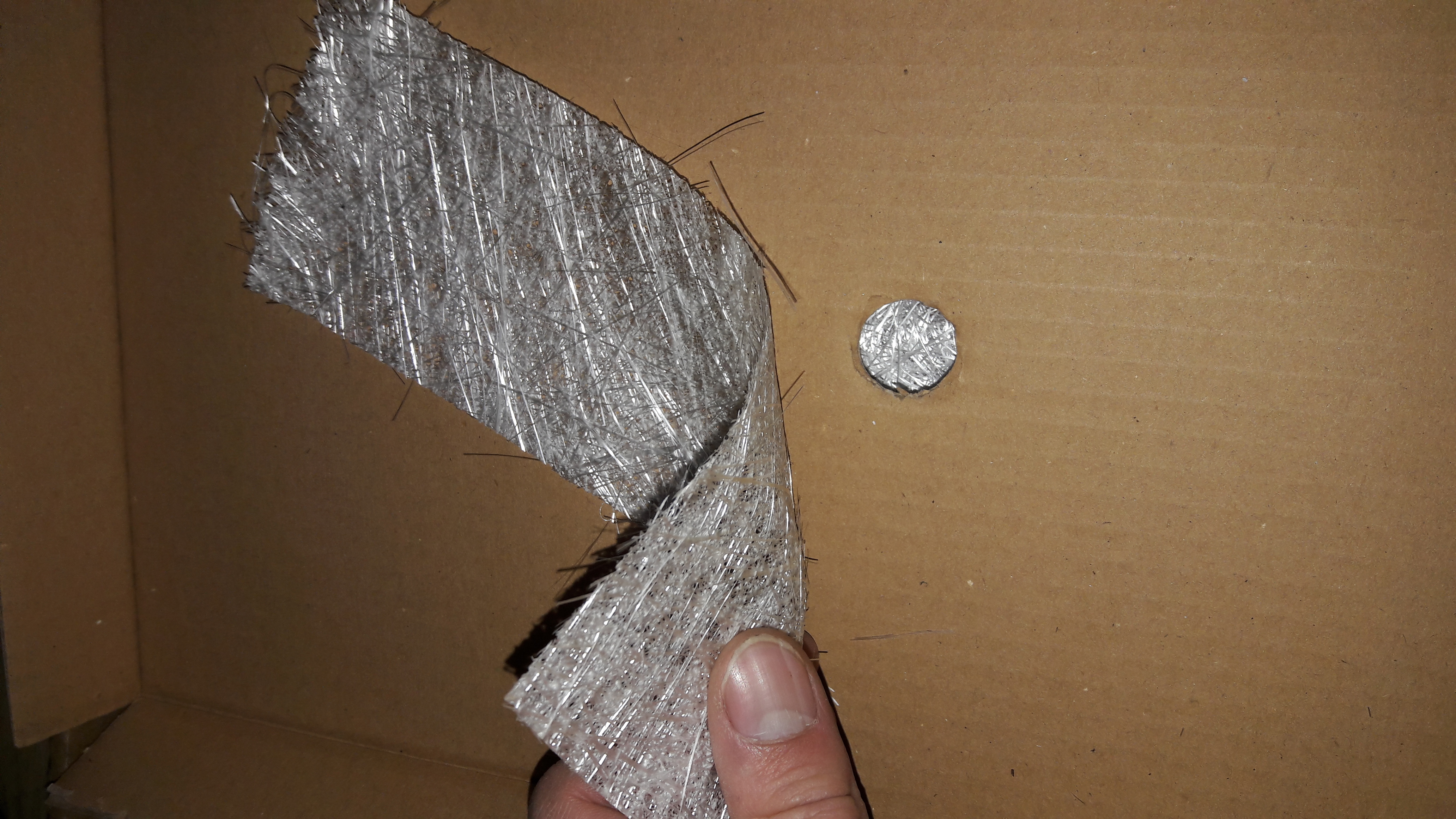 Pour stratifier vous commencez par une bande de mat sur le bord puis une autre plus large puis une autre encore plus large jusqu'à avoir redonné forme à votre pièce.