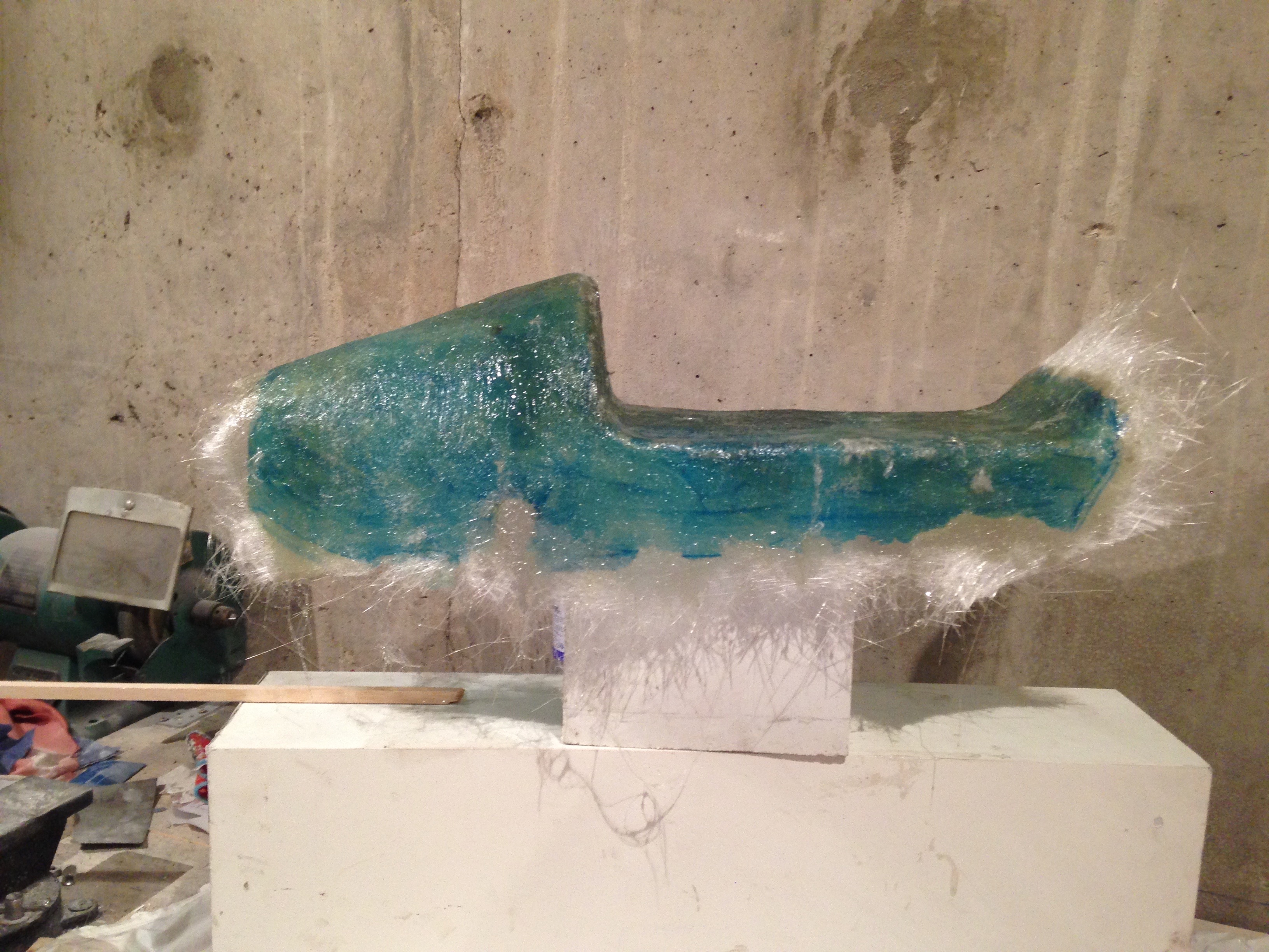 Apres avoir construi un moule j'ai "sortie" la piece en fibre de verre et resine (voir photo):