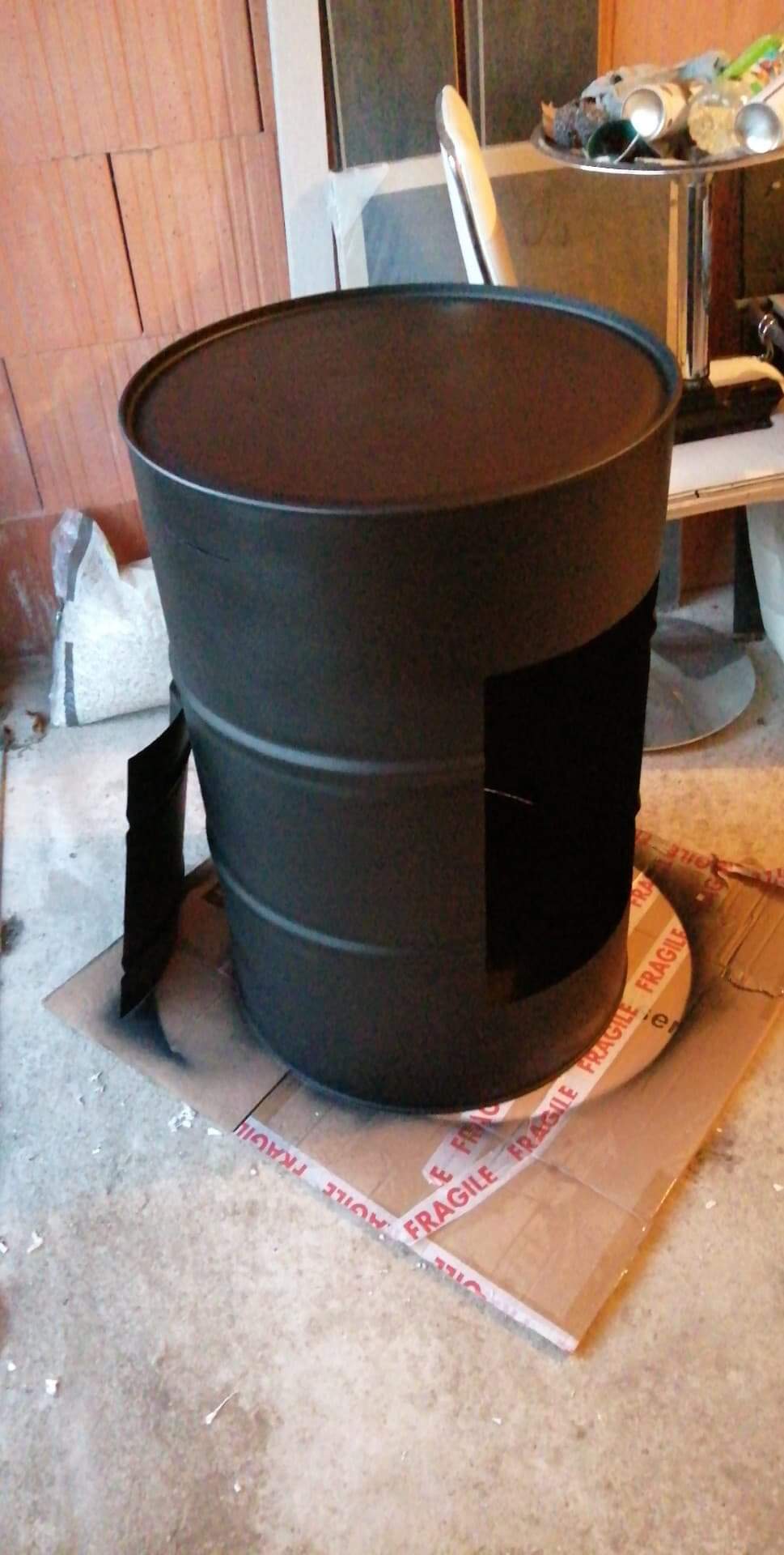 Je suis en projet sur un ancien bidon de solvant de 200L.