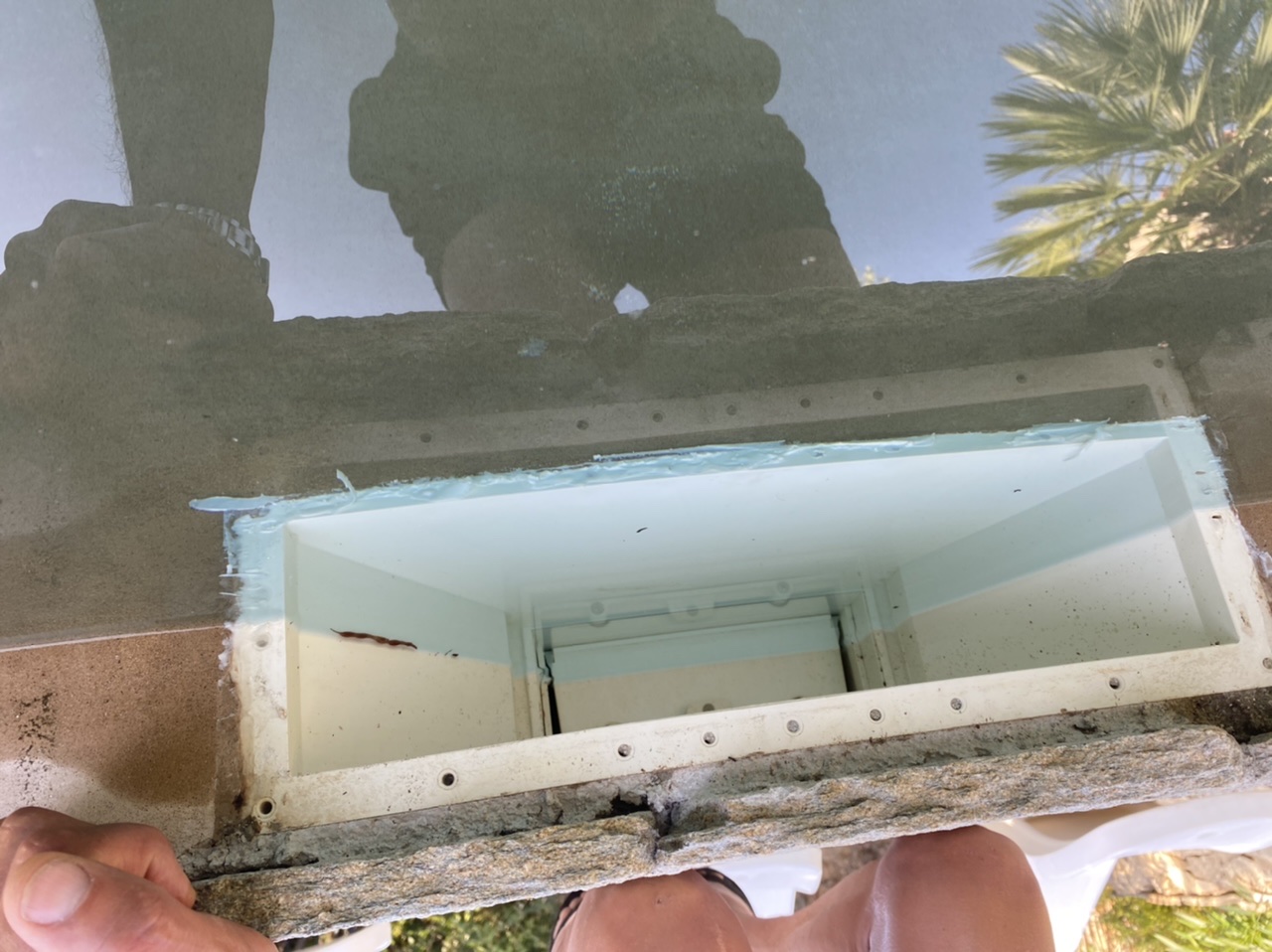J’ai fait refaire ma piscine en béton ciré et changer le système de filtration. Il y a une fuite entre le béton et le plastique de le bouche d’entrée d’eau du skimmer cf photos