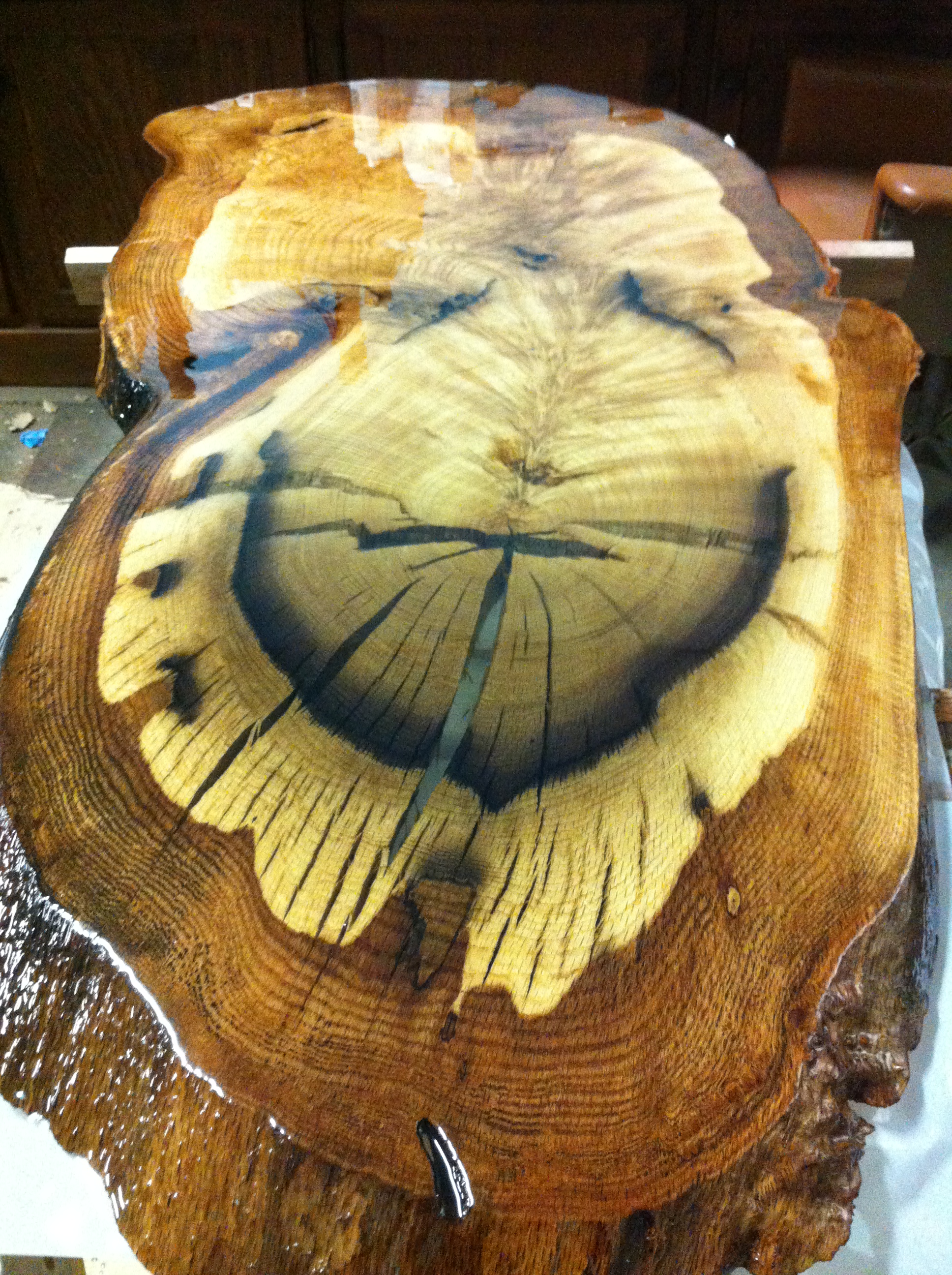 Le principe de base c'est que le bois bouge sans cesse même lorsqu'il est très vieux et bien sec, la résine par contre n'est pas aussi "souple". Les époxy cristal accrochent très fort au bois, cela réduit considérablement le risque de fissure.
