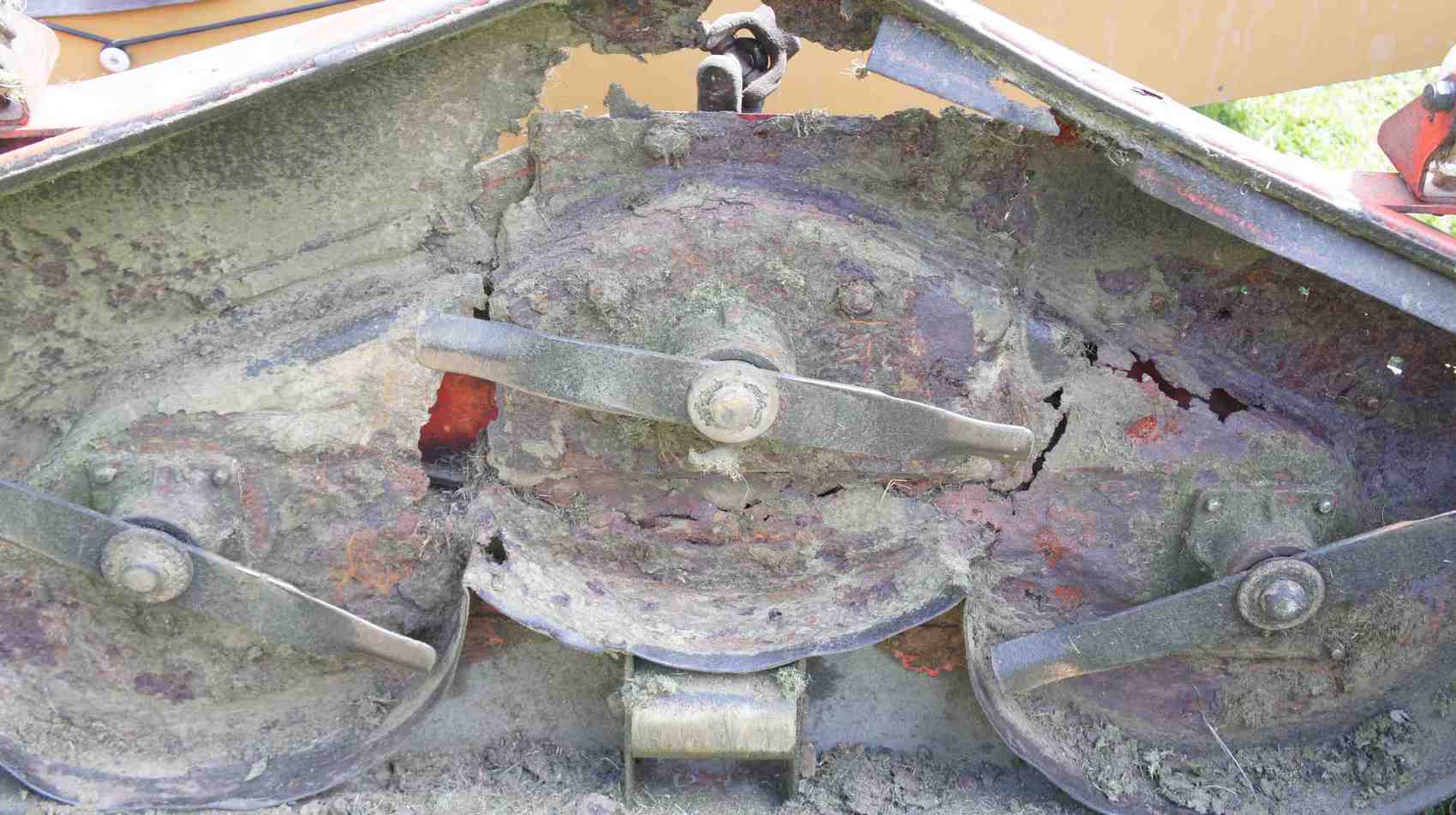Le carter de ma tondeuse ventrale de microtracteur est très corrodé si bien que le palier central est affaissé et la lame centrale touche une des deux lames latérales (3 lames au total).