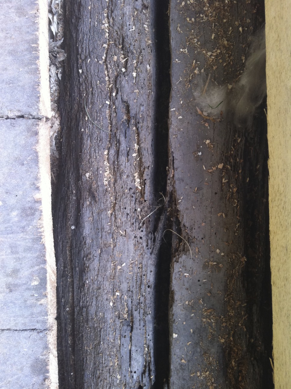 Et grosse surprise, sur la totalité, j'ai trois poutres qui sont particulièrement dégradées et plusieurs sont simplement fissurées par le temps et le séchage.