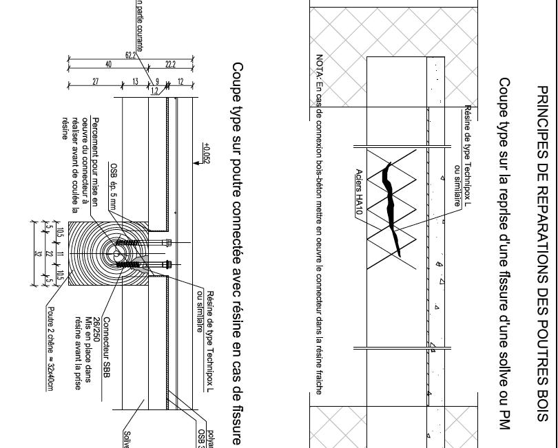 Dans les cas de réparation de poutres, on renforce toujours avec un composite fibre/résine epoxy.