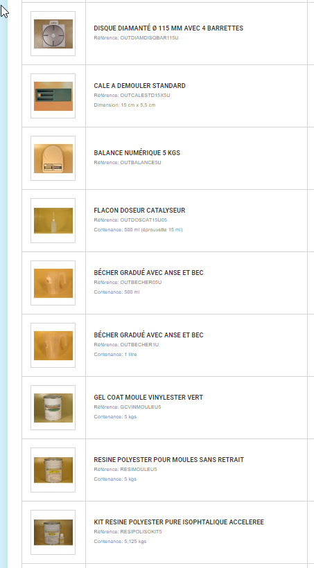 Je n'ai pas tout pris de suite (j'ai de la résine epoxy 15kg que j'ai put récupérer gracieusement mais qui ne me servira qu'a faire des essais)