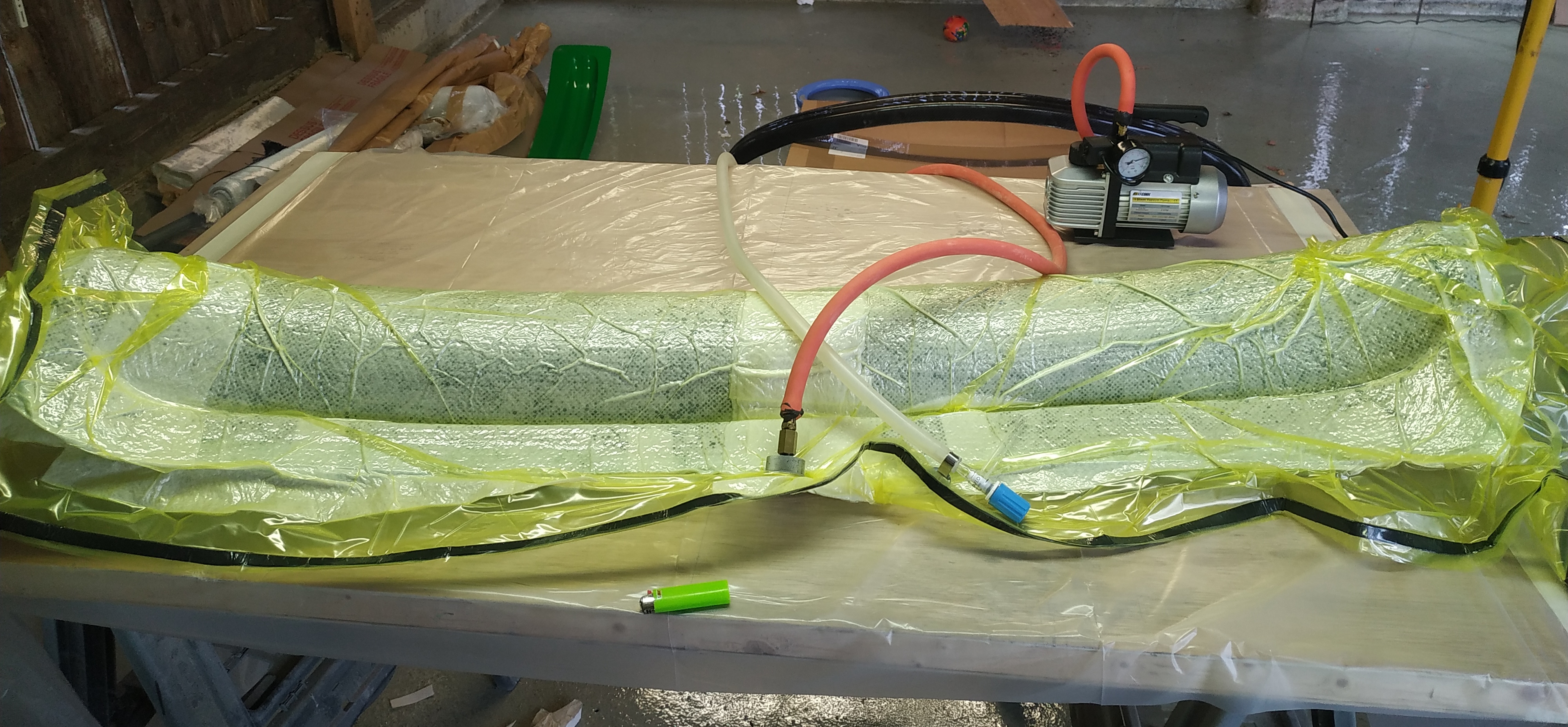 J ai enfin pris le temps de refaire un essais avec un nouvel échantillonnage. Sergé carbone 200, sillonne, UD +45/-45,sergé carbone 400, poid de tissu 540gr/poids resine 540. Petite variante cette fois j ai travaillé sous vide. Verdict demain soir.