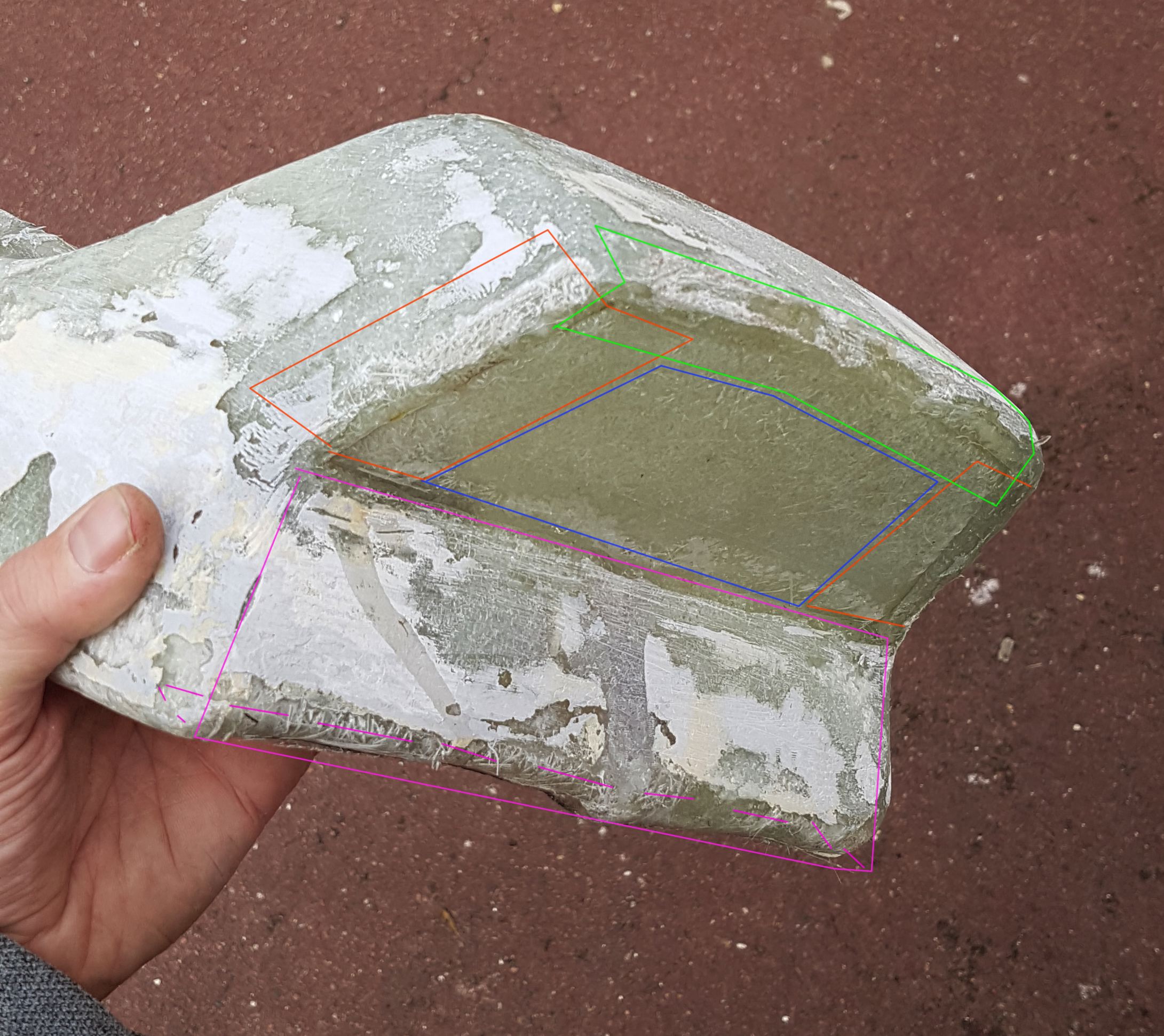 Bonne solution, ou alors je dois plutôt tenter de préparer mon mat en une seule pièce avec plusieurs découpes qui vont l'aider à épouser toutes les formes en une fois? (solution qui me permettrait je pense d'être plus homogène/lisses que la première solution, j'ai juste peur que les angles ne favorisent pas le collage de la résine dans les coins).