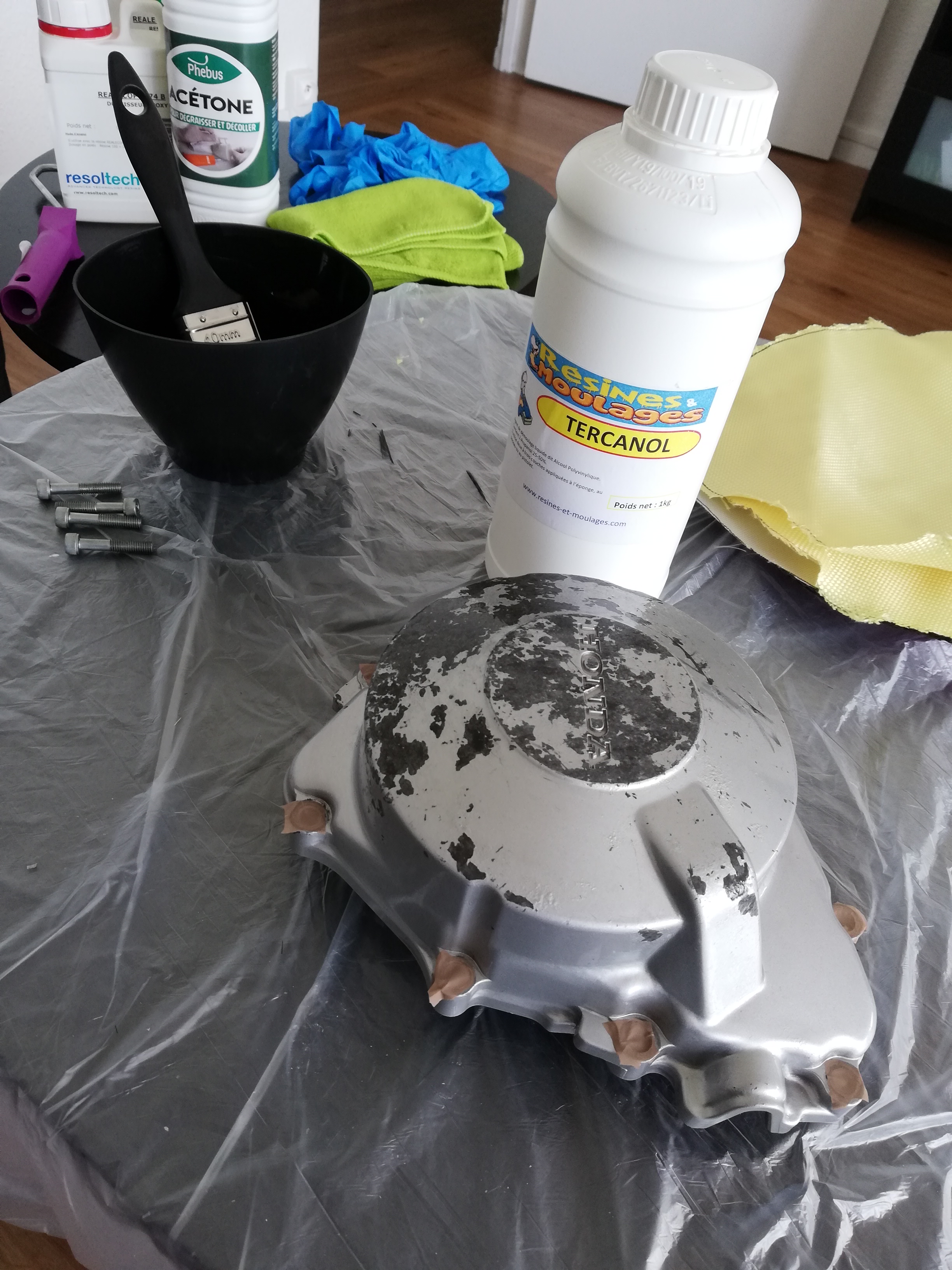 Pour enlever les résidus de tercanol sur ma pièce et mon carter, il faut utiliser un produit ? Car j'ai essayé avec de l'eau et du savon + éponge grattante mais il m'en reste pas mal sur le carter.