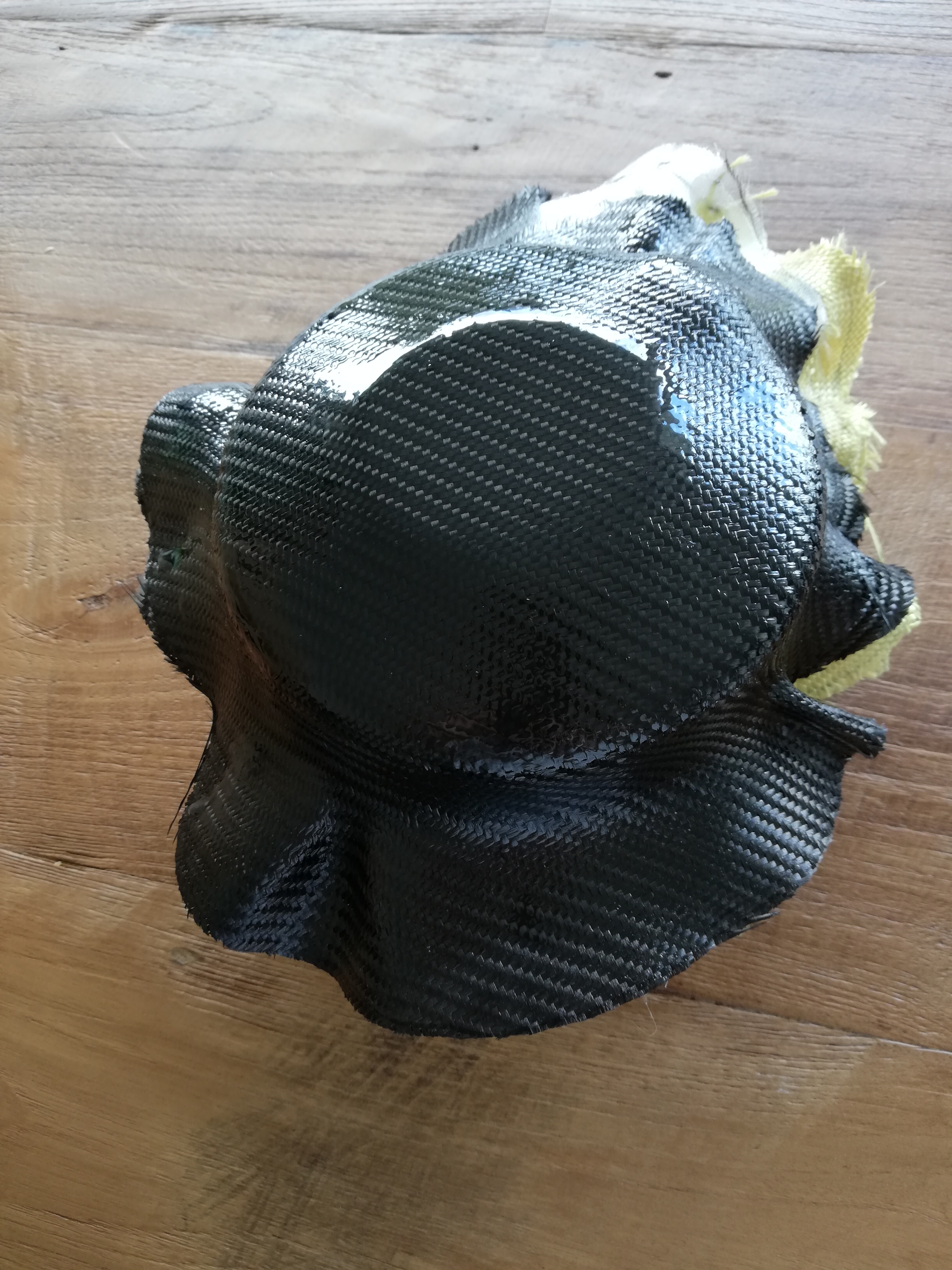 Vous vous êtes forcément trompé quelque part, les tissus ne rétrécissent pas à la stratification. Il faut faire attention avec des moulages un peu complexes avec du vertical, de l'horizontal et surtout des bossages, dans ce genre de cas mieux vaut optimiser la taille de coupe des tissus, vous perdez de la chute d'un côté mais vous n'avez pas de mauvaise surprise.
