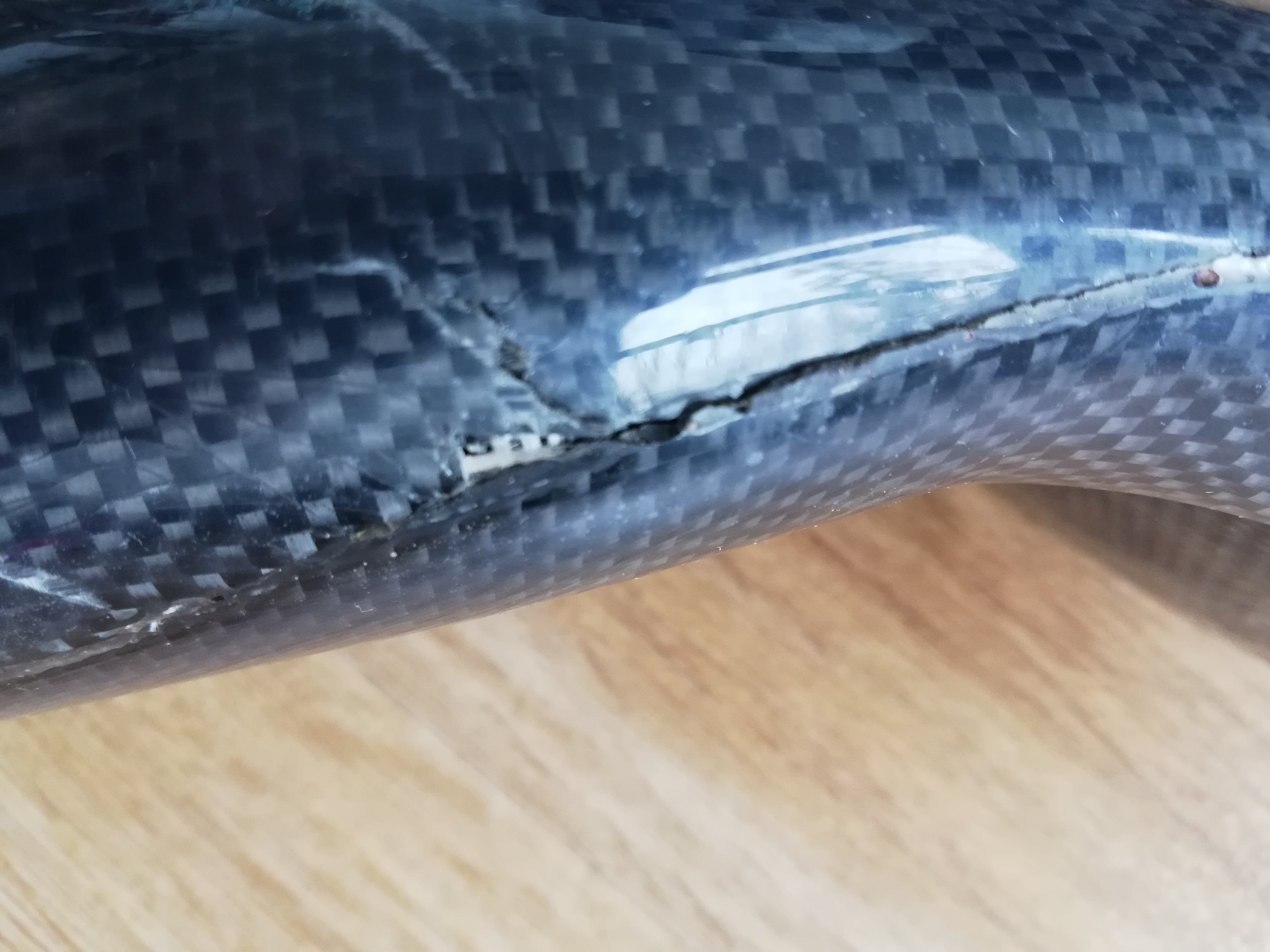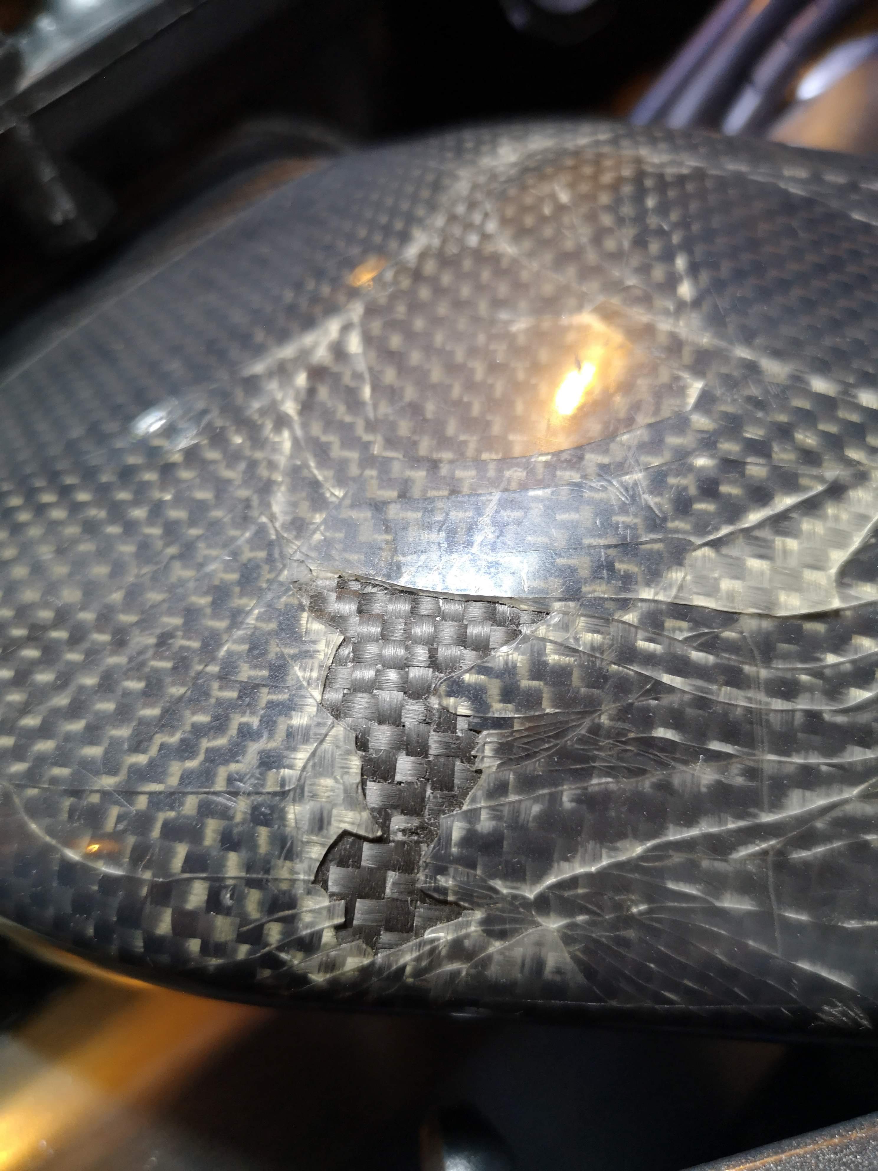 Je peux me tromper mais à priori ce n'est pas un choc qui a pu décoller le mastic de liaison, le carbone aurait explosé avant.