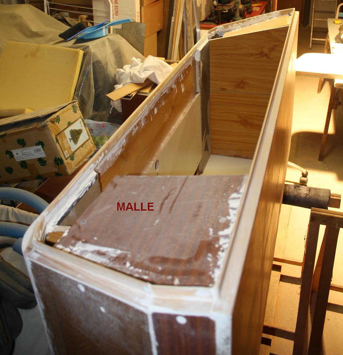 realisant un coffre en résine polyestere de :160,par 40 ,70de haut sur gabarit réalisé en panneaux de particules de récup (vieille armoire)