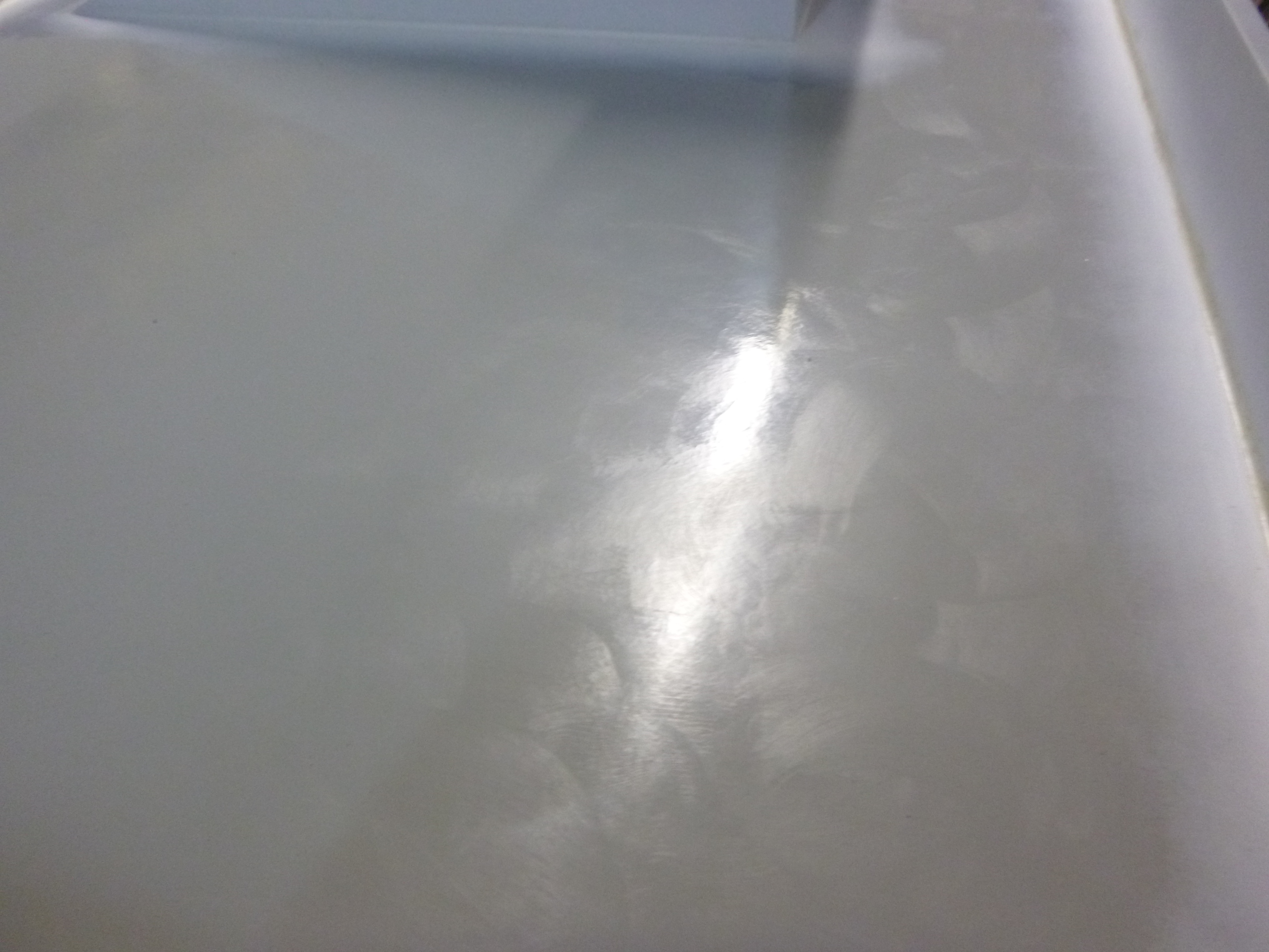 Quand je cire la surface du moule devient mate, j’attends environ 4h et je fais briller mais on voit toujours les petits cercles que j’ai faits quand je le cire, Ça brille mais on les voit toujours.