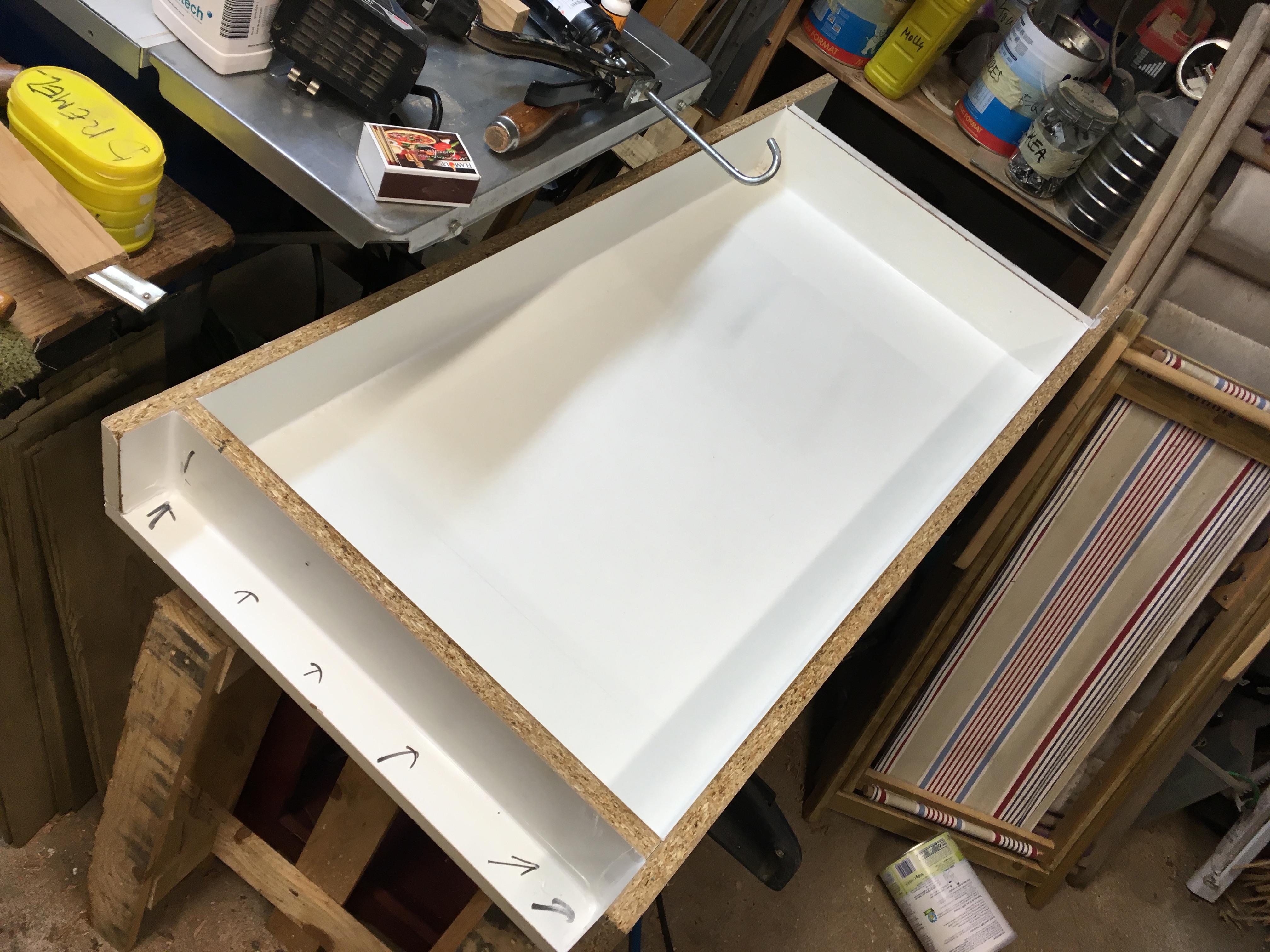 Planches de melaminé, vissées en moule par le dessous , la colle en pistolet n'a jamais bien fonctionné toujours des fuites... alors je me suis rabattu sur le silicone et là , parfait. j'utiliserai ca direct pour un autre projet.