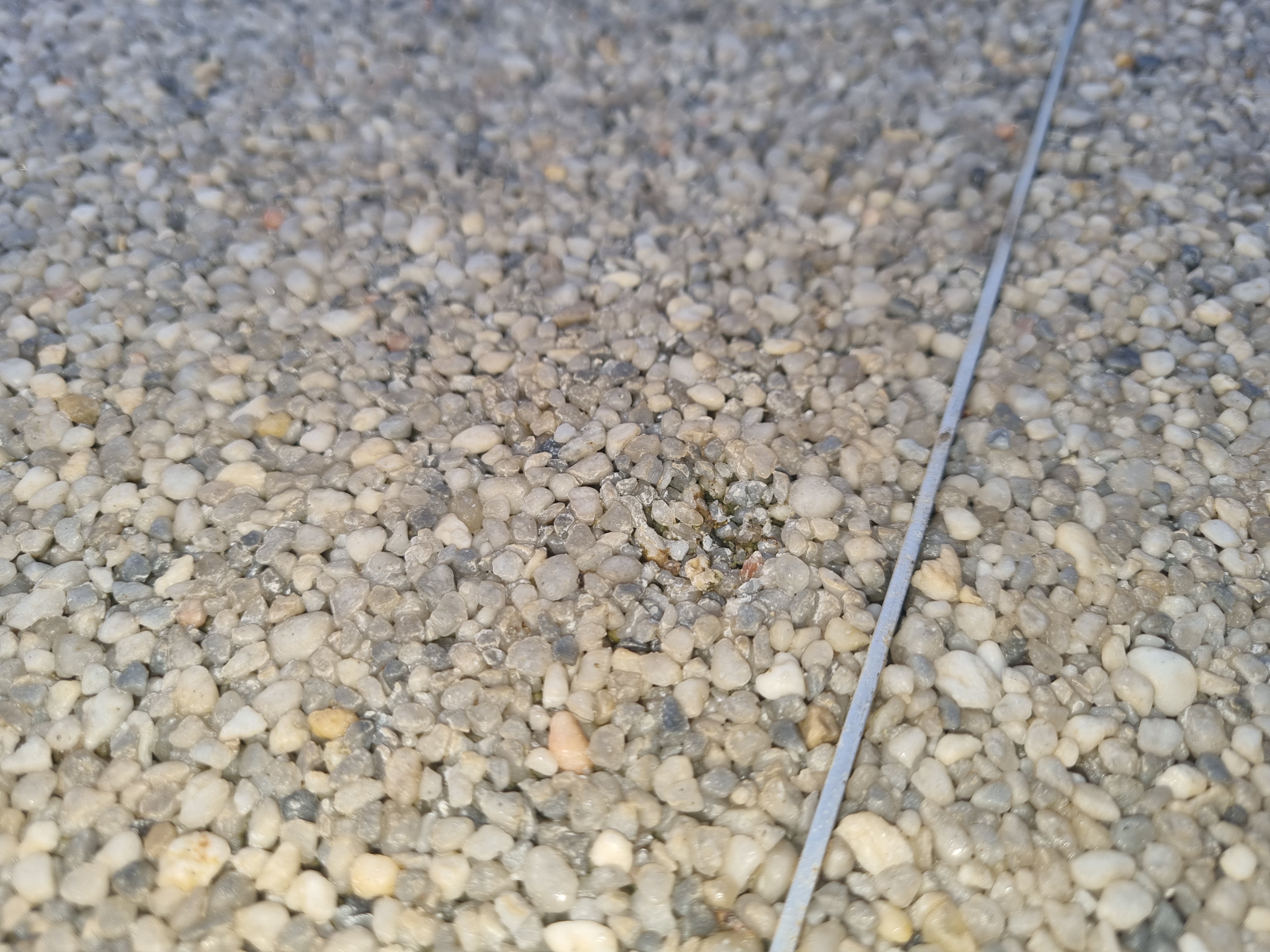 Nous ne pouvons pas commenter des travaux qui ne sont pas réalisés avec nos références de résines ; néanmoins et à priori, la moquette de pierre n'a pas été rapidement recouverte d'une couche de fermeture au moment de la réalisation du chantier.