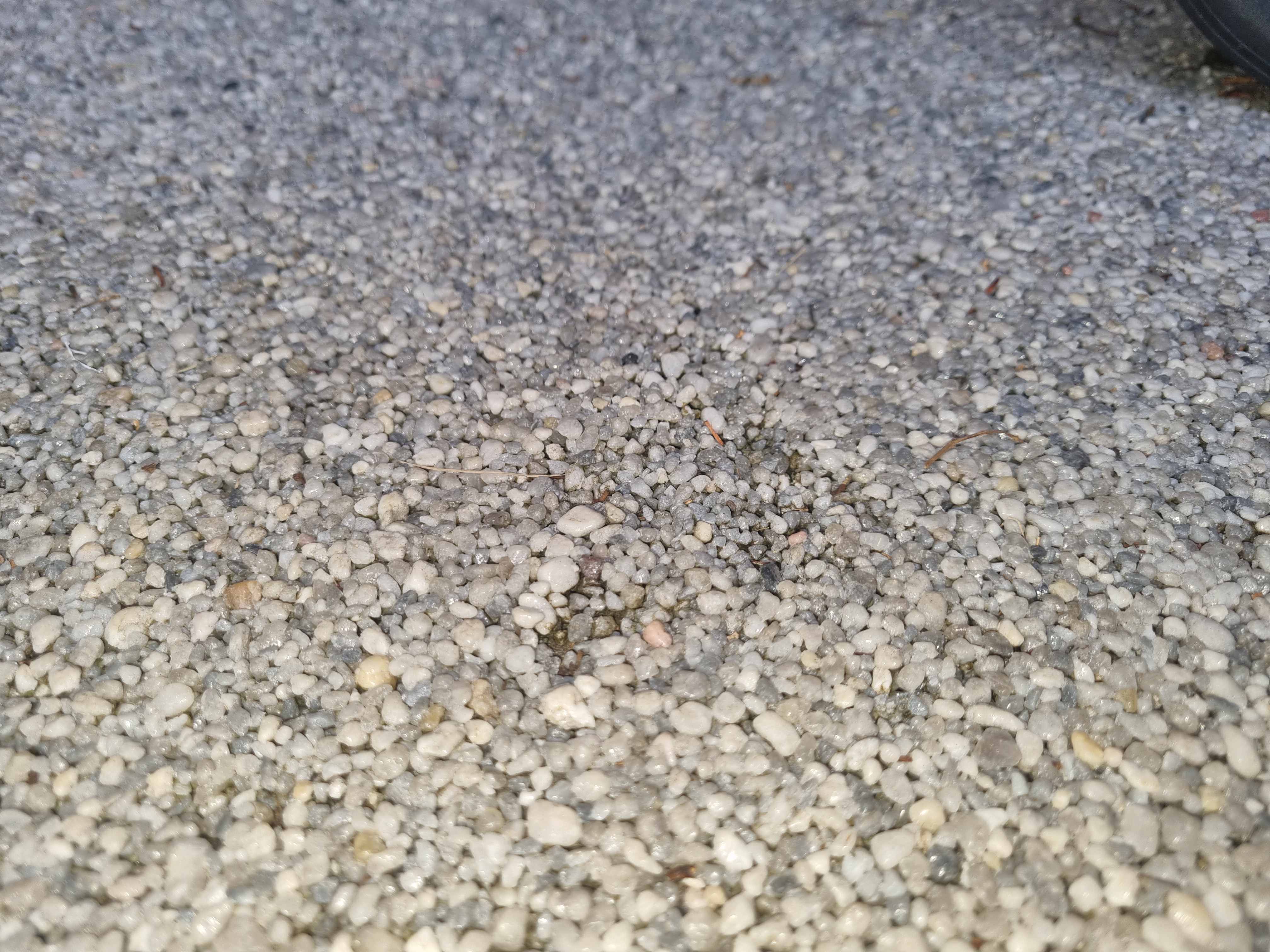 Au doigt c'est friable...pourtant ça a été posé des jours chauds et secs. ça avait commencé à se détériorer avant même la canicule et le gel. Les gravillons sautent maintenant par plaques entières, que ça soit sur des zones en bordure qu'en plein milieu, c'est moche inconfortable et surtout ça a a peine 1 an et demi