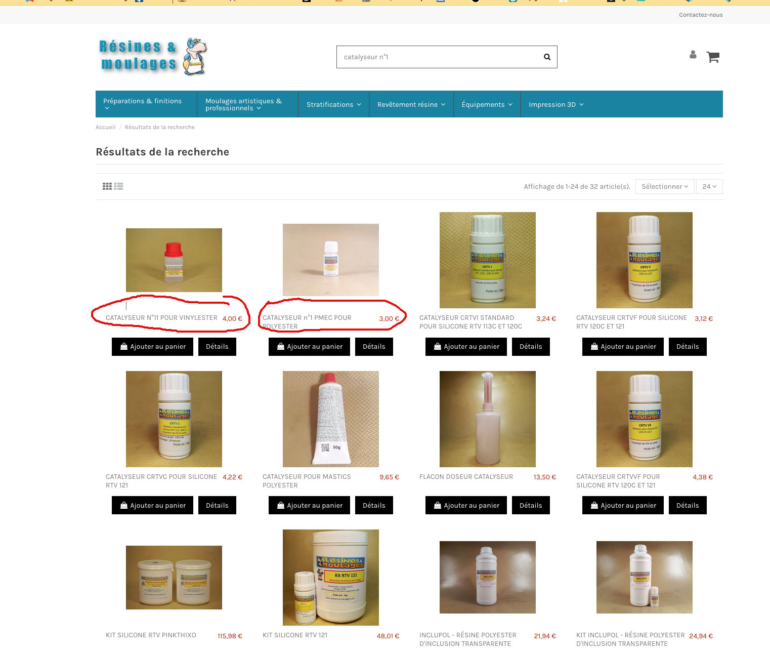 En revanche j'ai acheté du catalyseur n°1 et n° 11 mais je ne sais pas avec quel produit il se mélange.