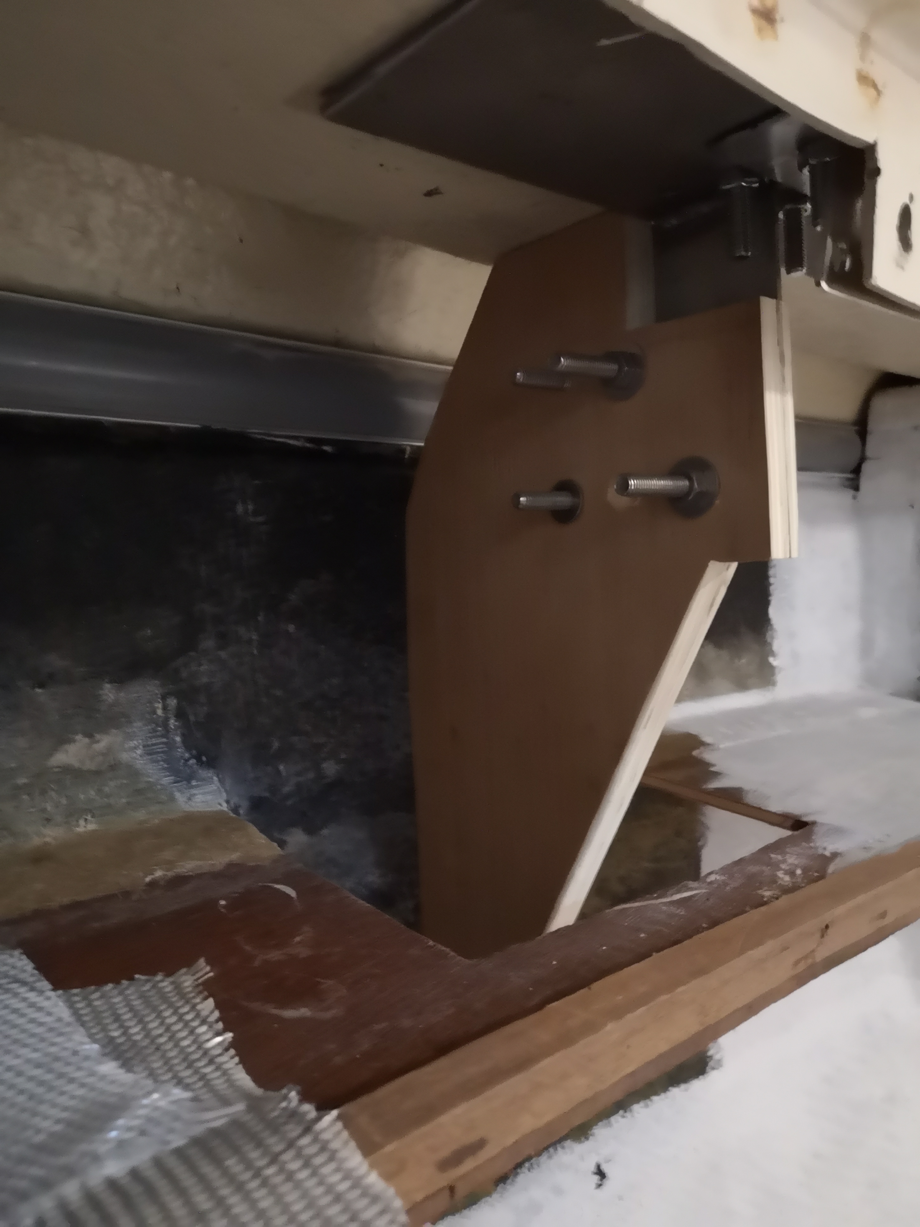 Bonjour et merci pour ces réponses. Voilà ce que ça donne en vrai: IMG_20190714_133844.jpg IMG_20190714_133911.jpg La coque est en polyester contrairement au pont qui est en sandwich. Du coup, quid du carton? plus la peine je pense? OK pour mat/roving/mat, j'en ai encore OK pour la résine polyester ...