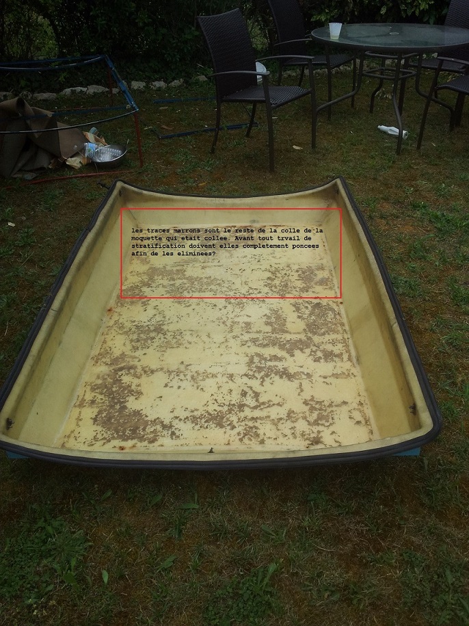 Si vous devez intervenir sur la partie intérieure où il reste de la colle, vous devez impérativement l'enlever par un bon ponçage. De toute façon il va falloir poncer partout où vous devez intervenir, meuleuse d'angle qui tourner à 30 000 trs et disques résorcine, les rouges qui arrachent bien donc prendre un grain pas trop gros et apprendre à être délicat avec cet engin.