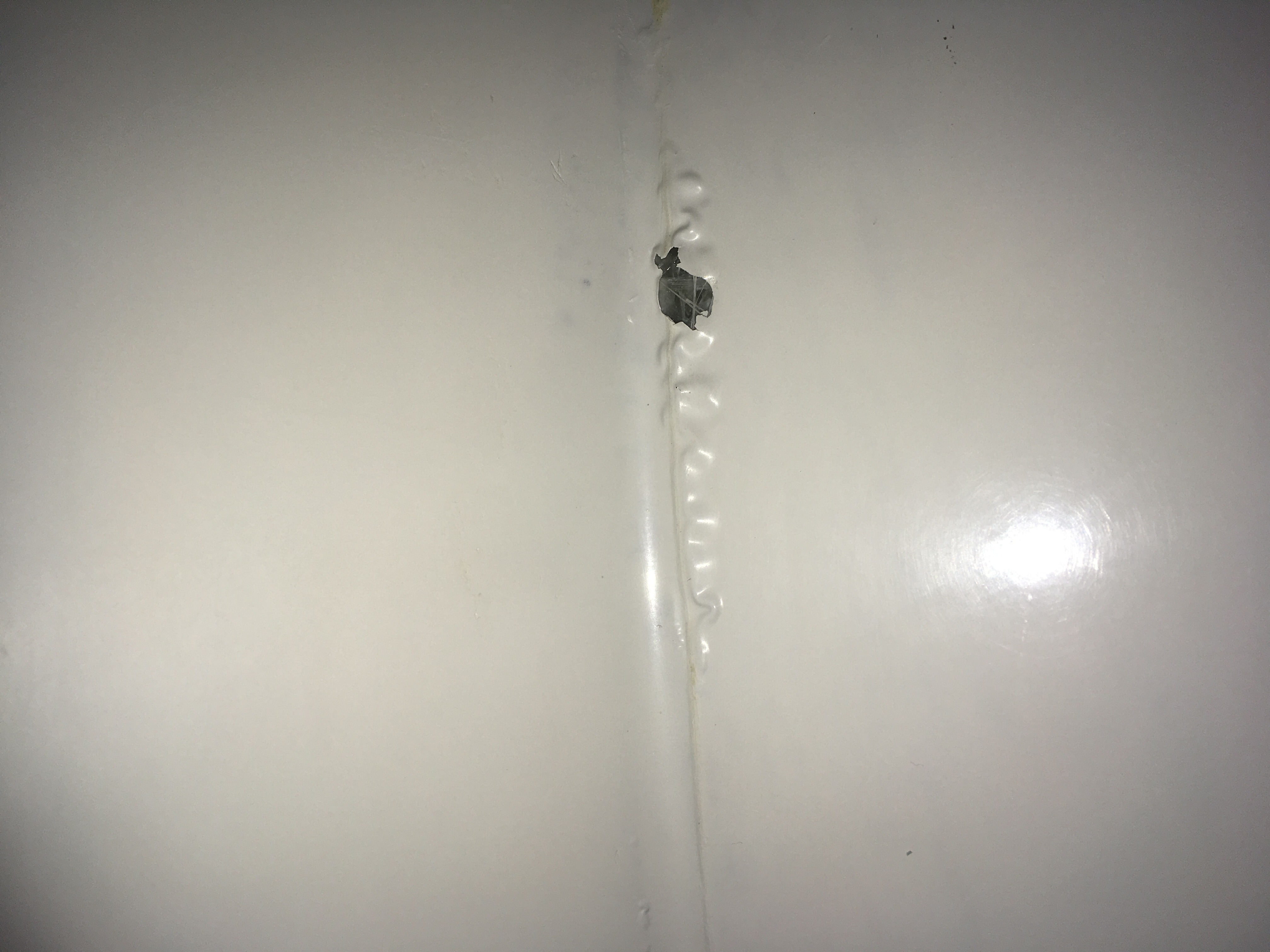 EDIT: j'en suis au ponçage au 320 et j'ai remarqué de la micro-porosité par endroit: malhereusement l'endroit ou je travail est humide, sans oubliuer le fait que j'ai chargé mon topcpat de réparation avec silice et carbonate de calcium/ tout cela cumulé doit en être la cause.