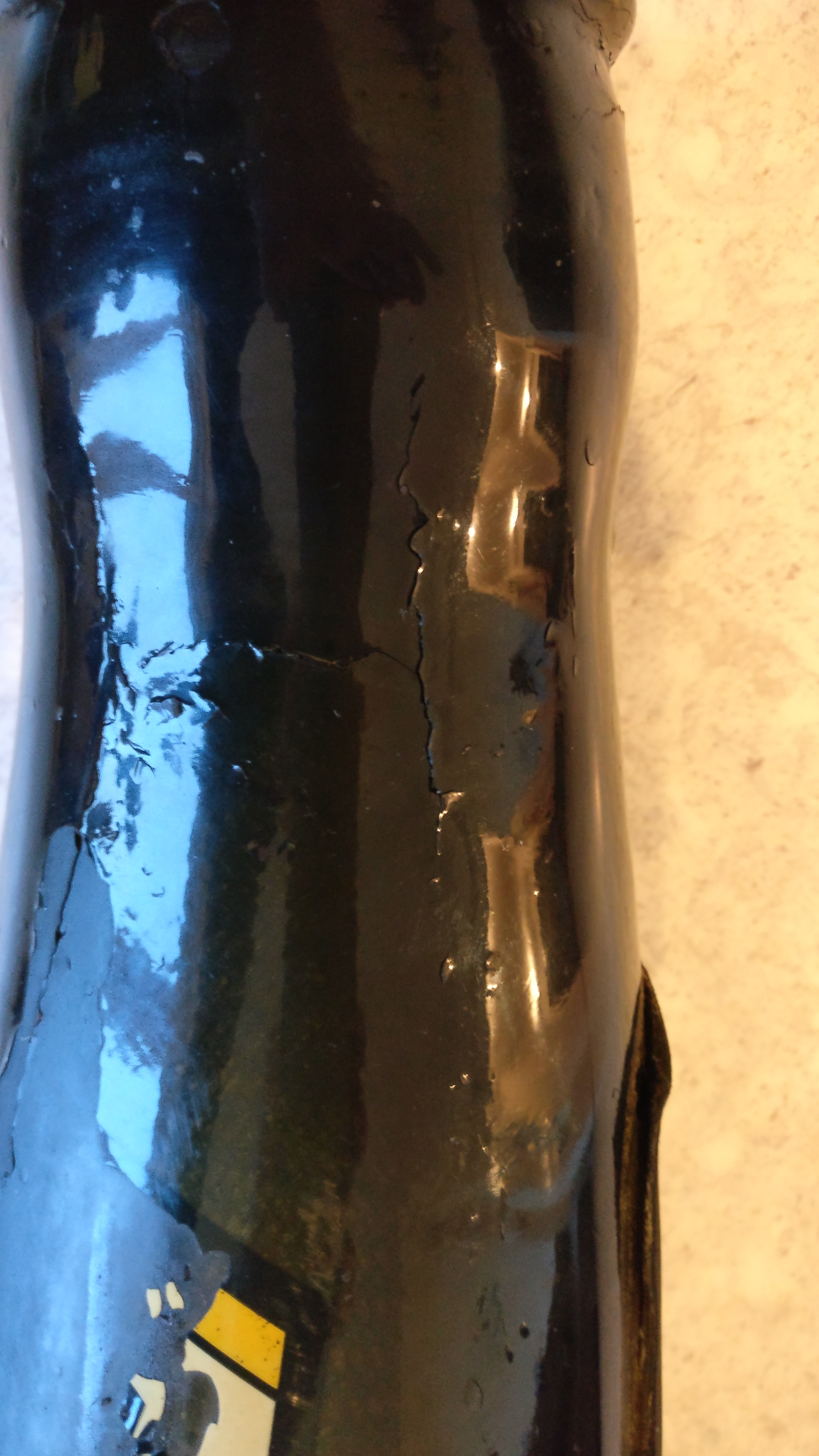 Ensuite renforcer le pot par l'extérieur, poncer le vernis et poser de la fibre au endroit fragilisé