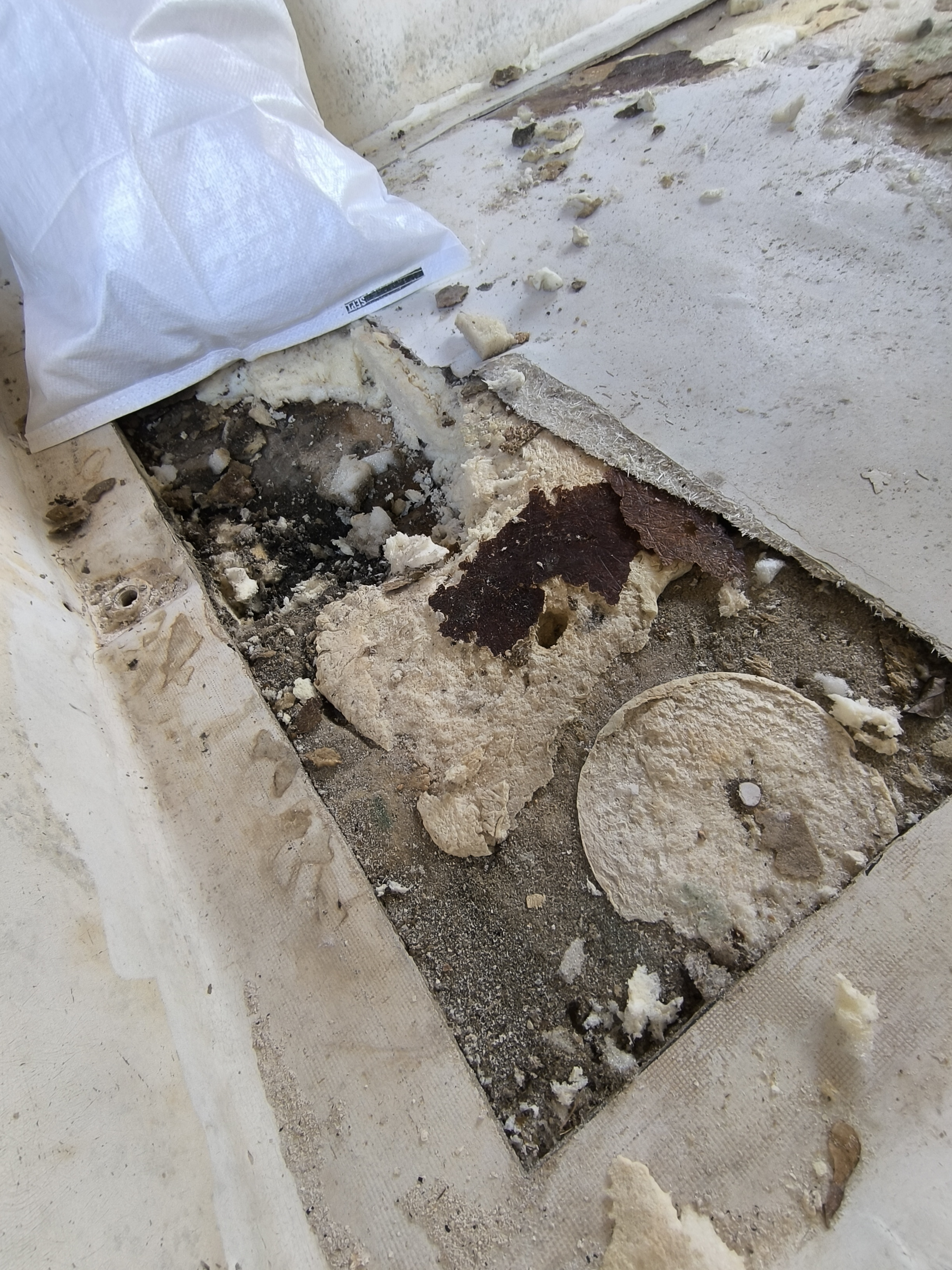 Si la mousse est gorgée d’eau, il y a une entrée d'eau quelque part, il faut la trouver si elle n'était pas sur ce que vous avez découpé.