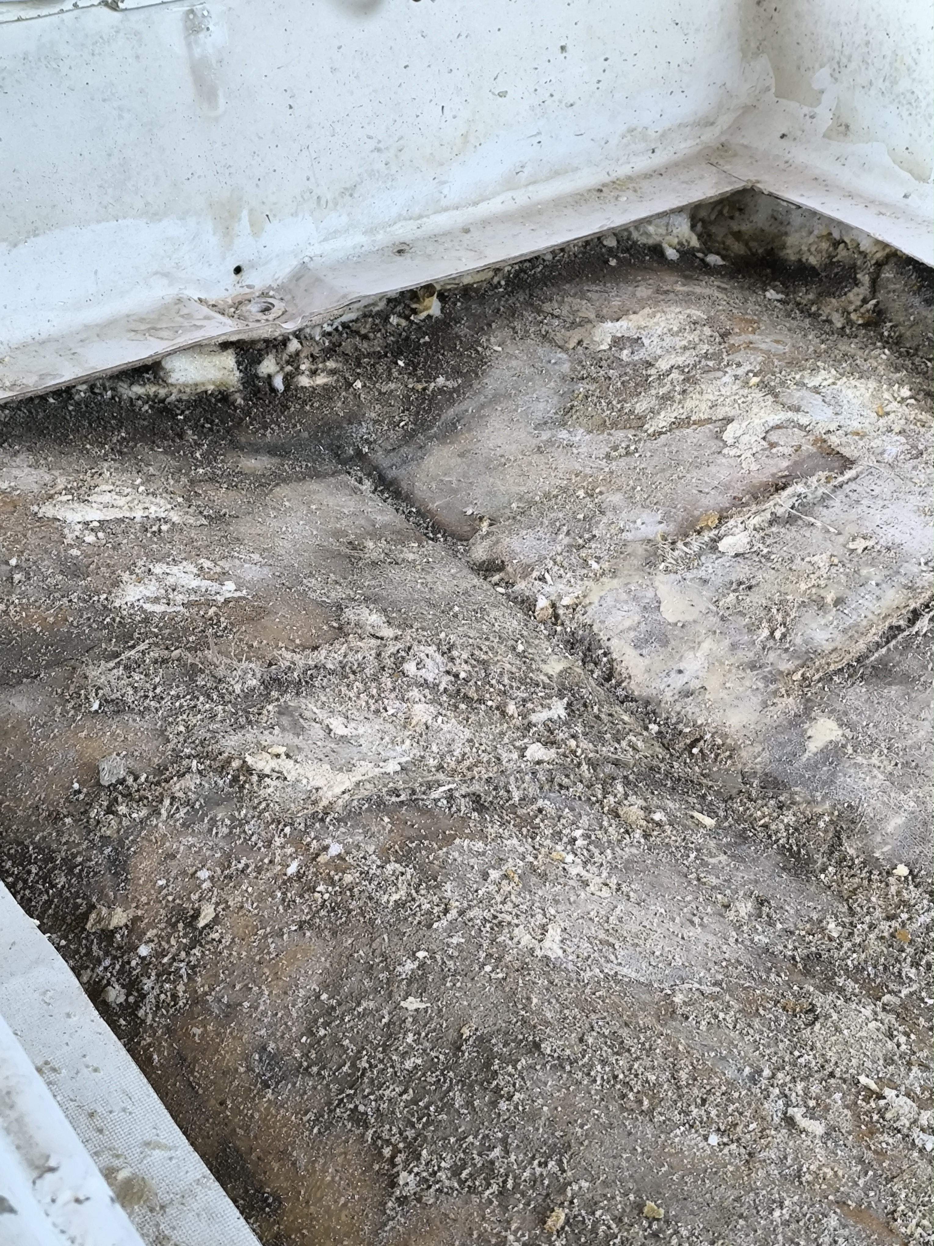 En effet sur le schéma plus haut il me faut remplacer la partie rouge donc j'ai découpé Le pont pour arriver à la mousse qui est gorgée d'eau, l'enlever je pensais découper une plaque de cp de 230cms par 122 ce qui représente exactement le pont puis deux bon trous pour remplir de mousse polyuréthane bicomposant à cellules fermées je vais regarder si vous en avez, calculer combien il m'en faut et ensuite stratifié le cp car j'aurais une base plate.