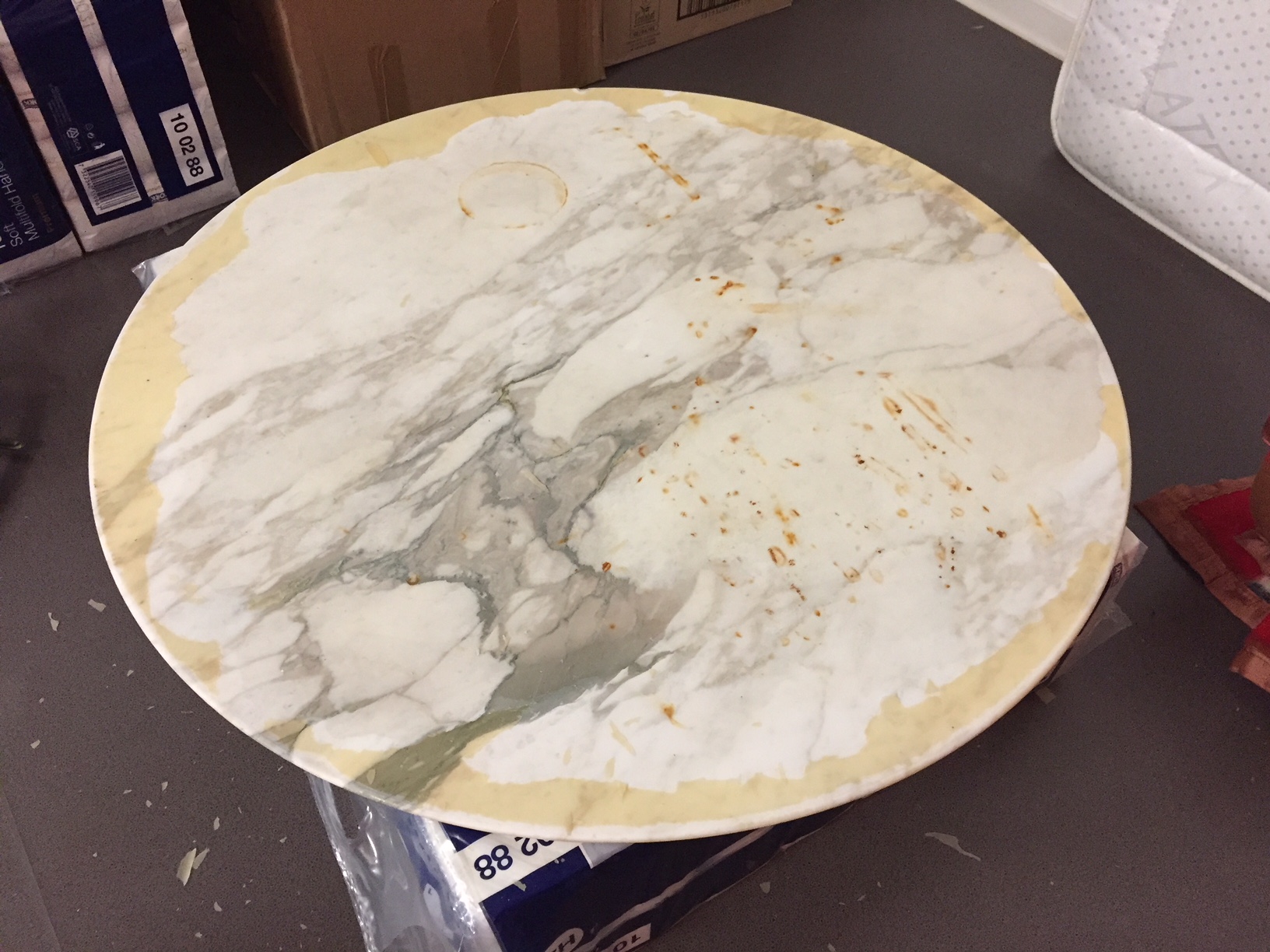 Je viens d'acquérir ce jour une adorable table en marbre blanc, qui a visiblement été nettoyée, poncee, polie