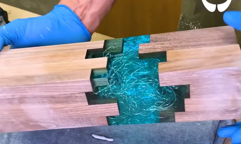 Vous commencez au papier à sec de plus en plus fin puis au papier à l'eau jusqu'au plus fin pour obtenir une surface de résine parfaitement translucide. Après un bon nettoyage et le séchage du bois, vous pouvez vernir.