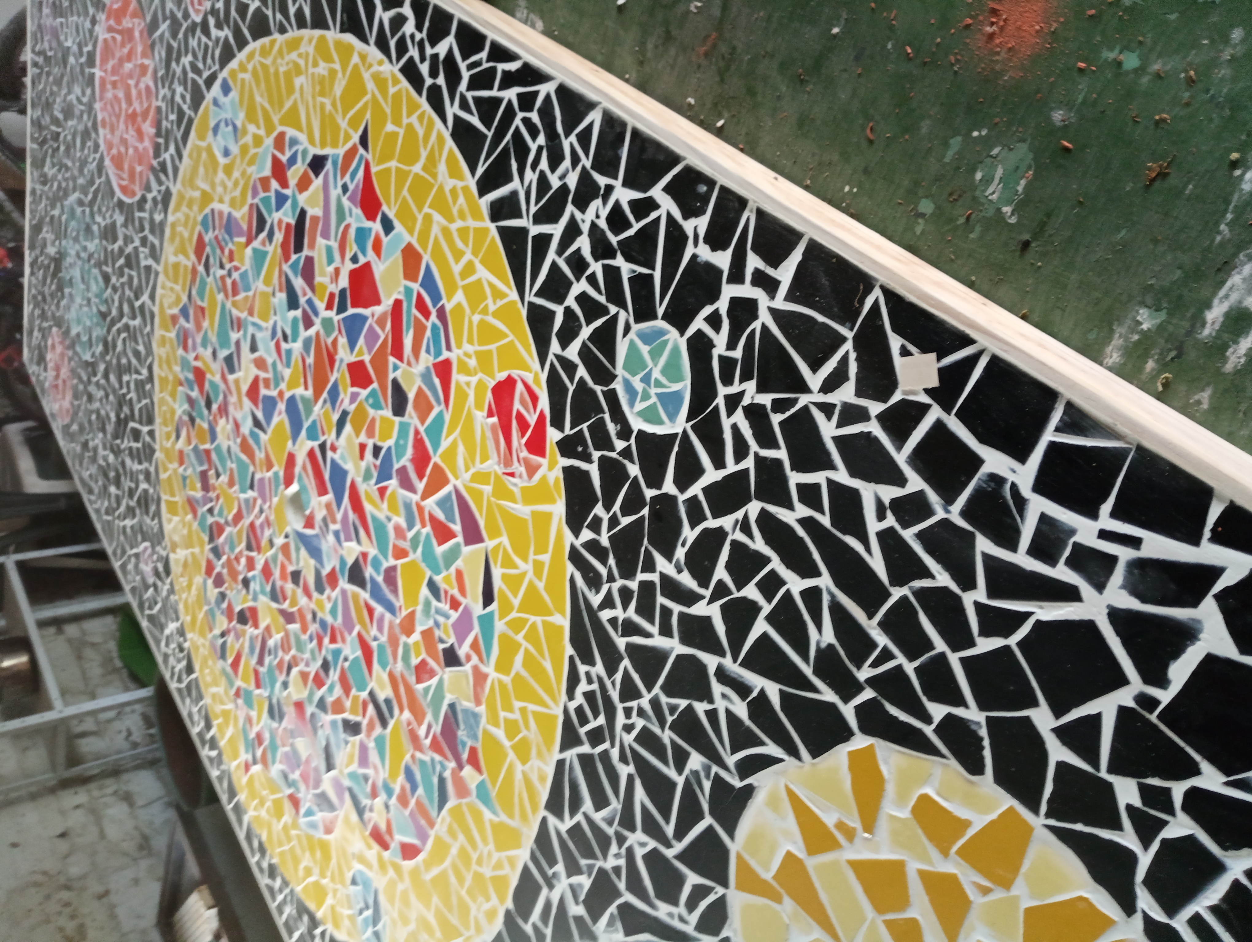 Vous pourriez vernir avec une résine époxy transparente qui permet d'appliquer en forte épaisseur pour réguler la surface mais en extérieur malgré les qualités anti-UVs, ça finira forcément par jaunir dans le temps.