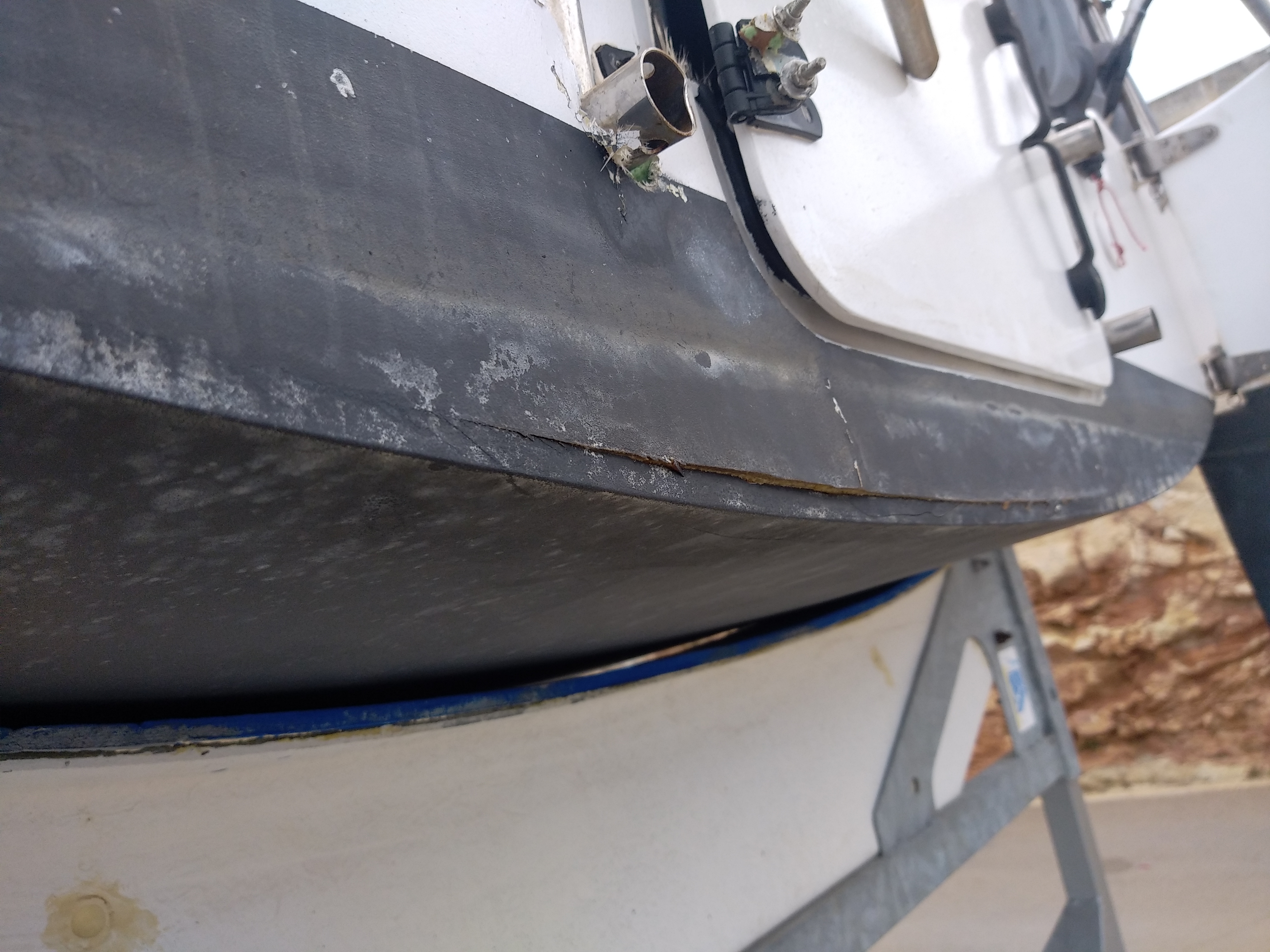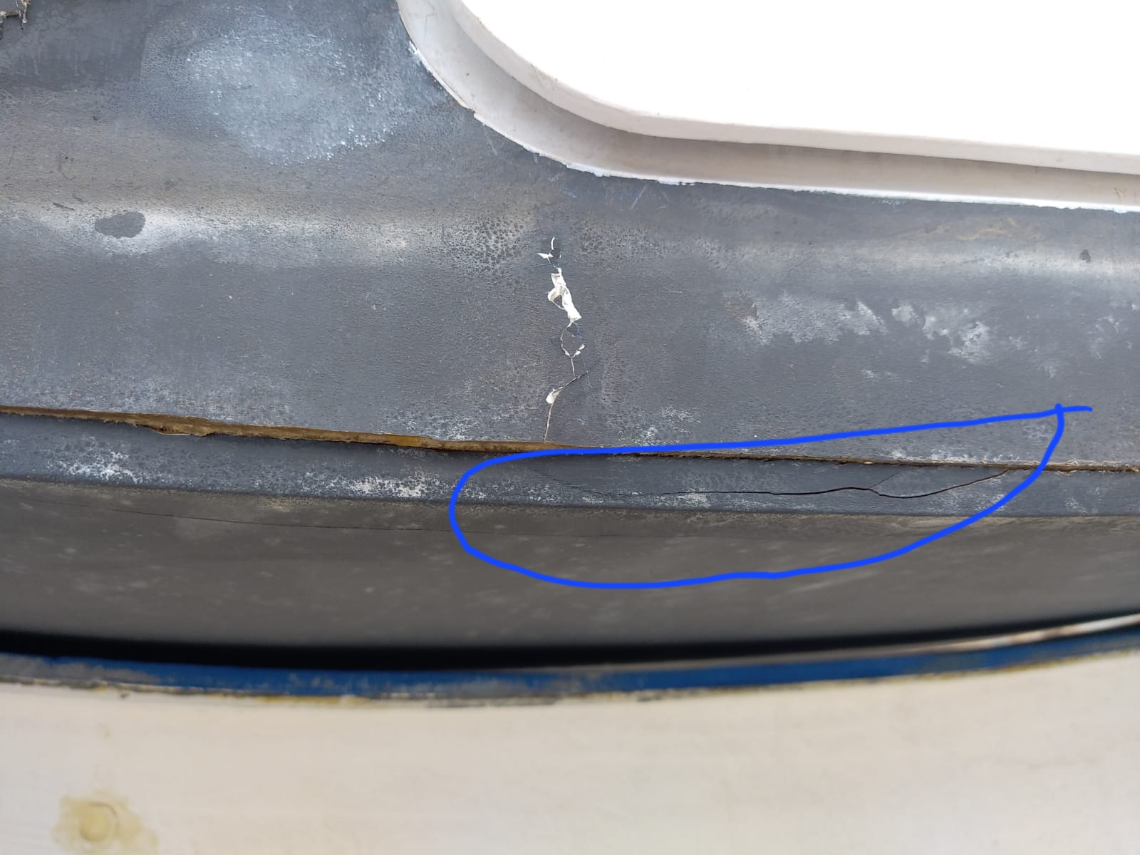 En regardant les photos on voit une fissure dans la masse de la coque (entourée en bleu sur la photo en pj) me faut-il également poncer le fond du bateau pour la retrouver?