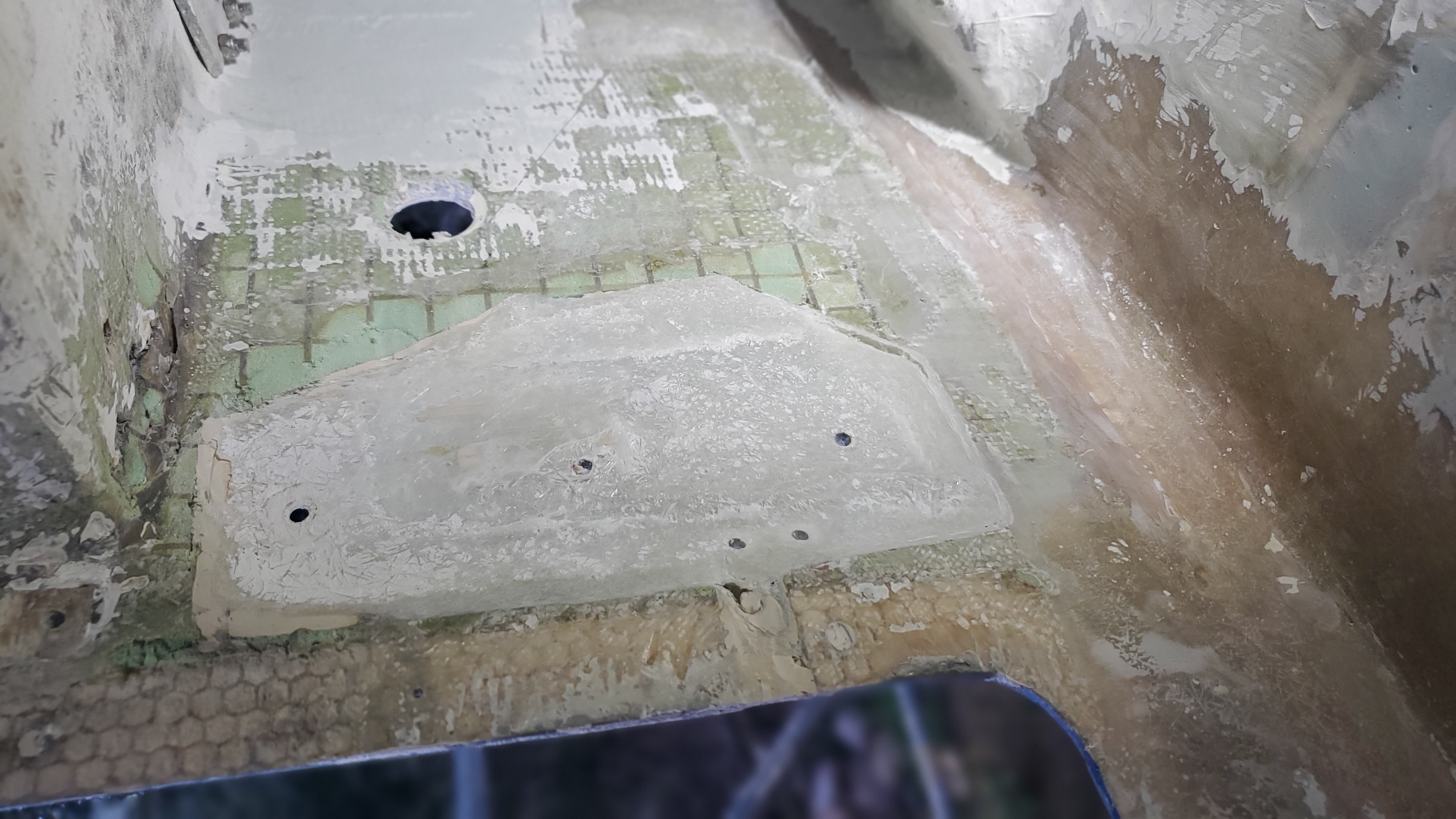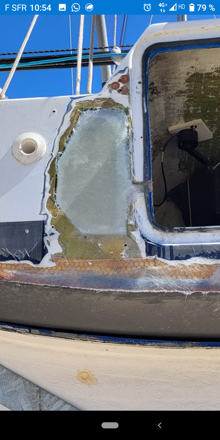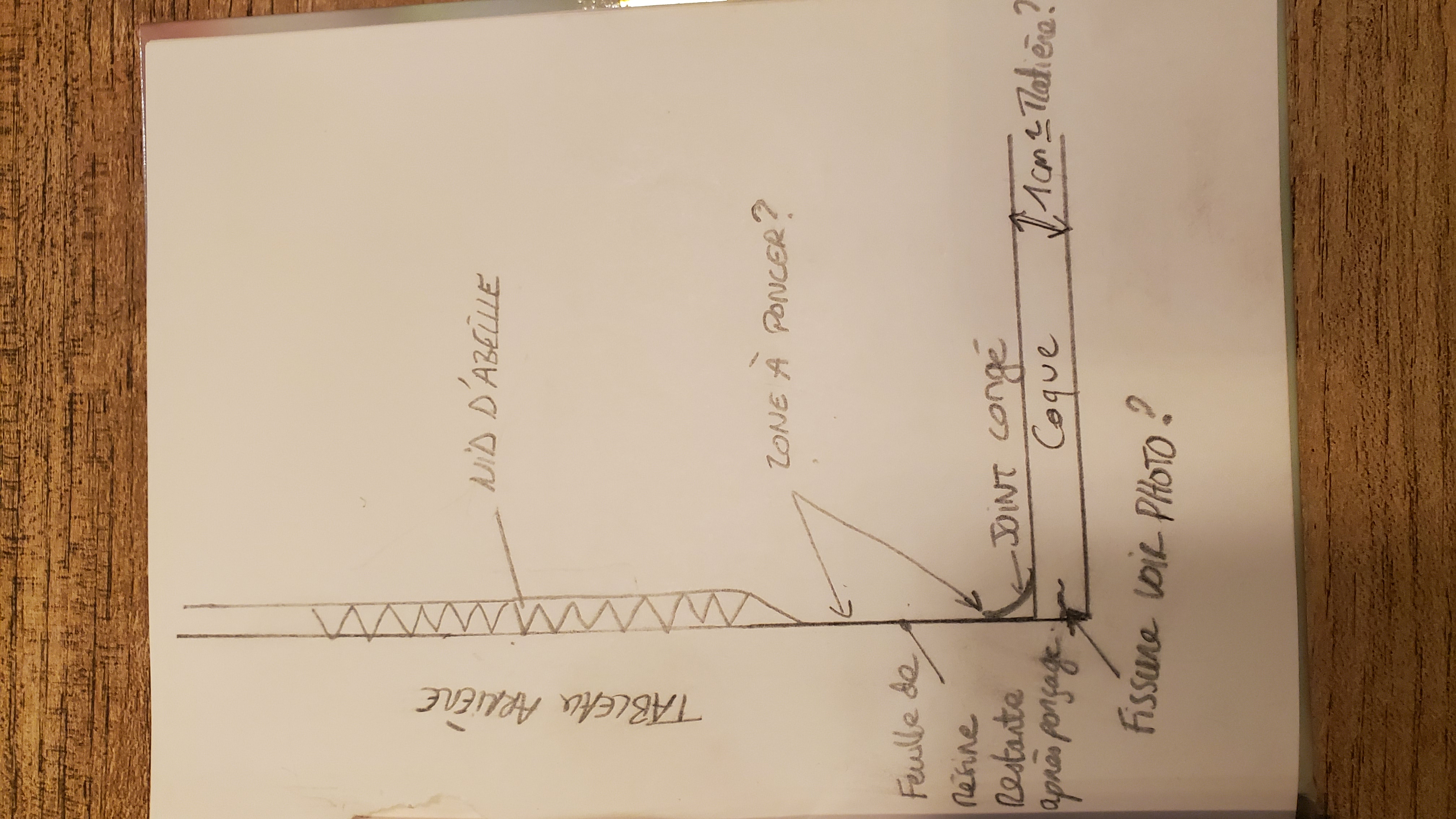 - il faut reconstruire avec le même échantillonnage qu'à la construction soit mat, roving, mousse PU et nid d'abeille mais celui-ci semble n'être que sur les bordés toujours d'après photo :?