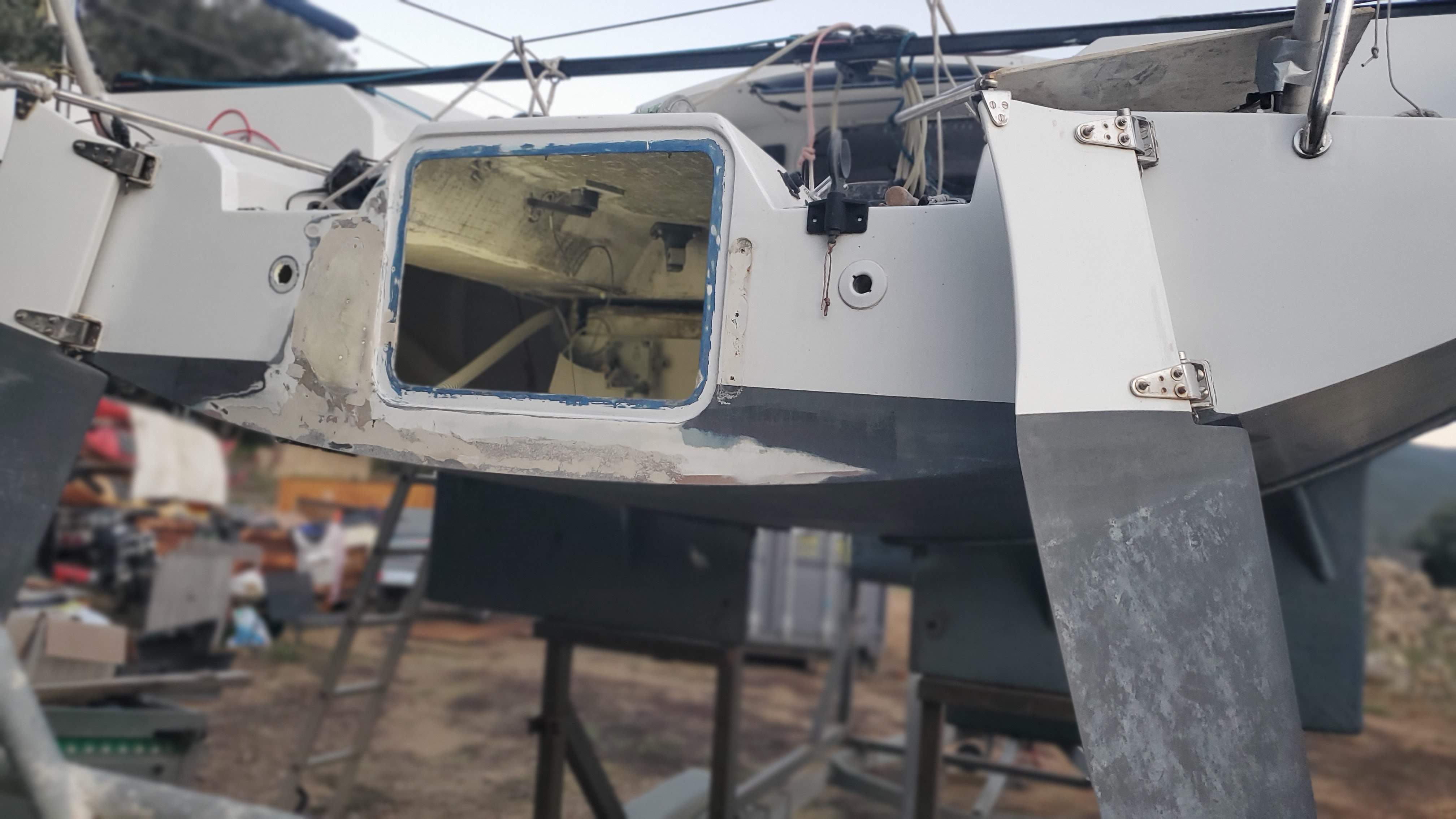 Il y a une autre solution plus onéreuse et longue qui consiste à mouler la partie détruite puis tirer le morceau dans le moule et le raccorder à la coque découpée comme ce qu'on fait pour réparer ou modifier les voiliers de compétition.