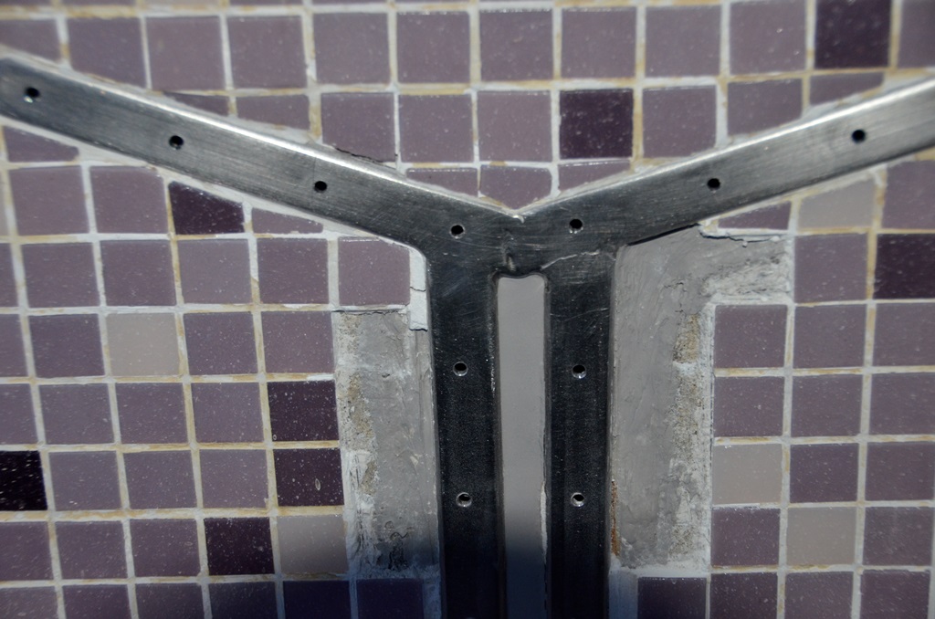 J'ai intégré dans les dossiers des rampes (tube inox carré 20x20 percés d'une centaine de trous de diamètre 5 mm) à fleur de la pâte de verre,pour faire des jets dorsaux basse pression. Le résultat est super, mais j'ai des problèmes d'étanchéité notamment entre la maçonnerie et les rampes.