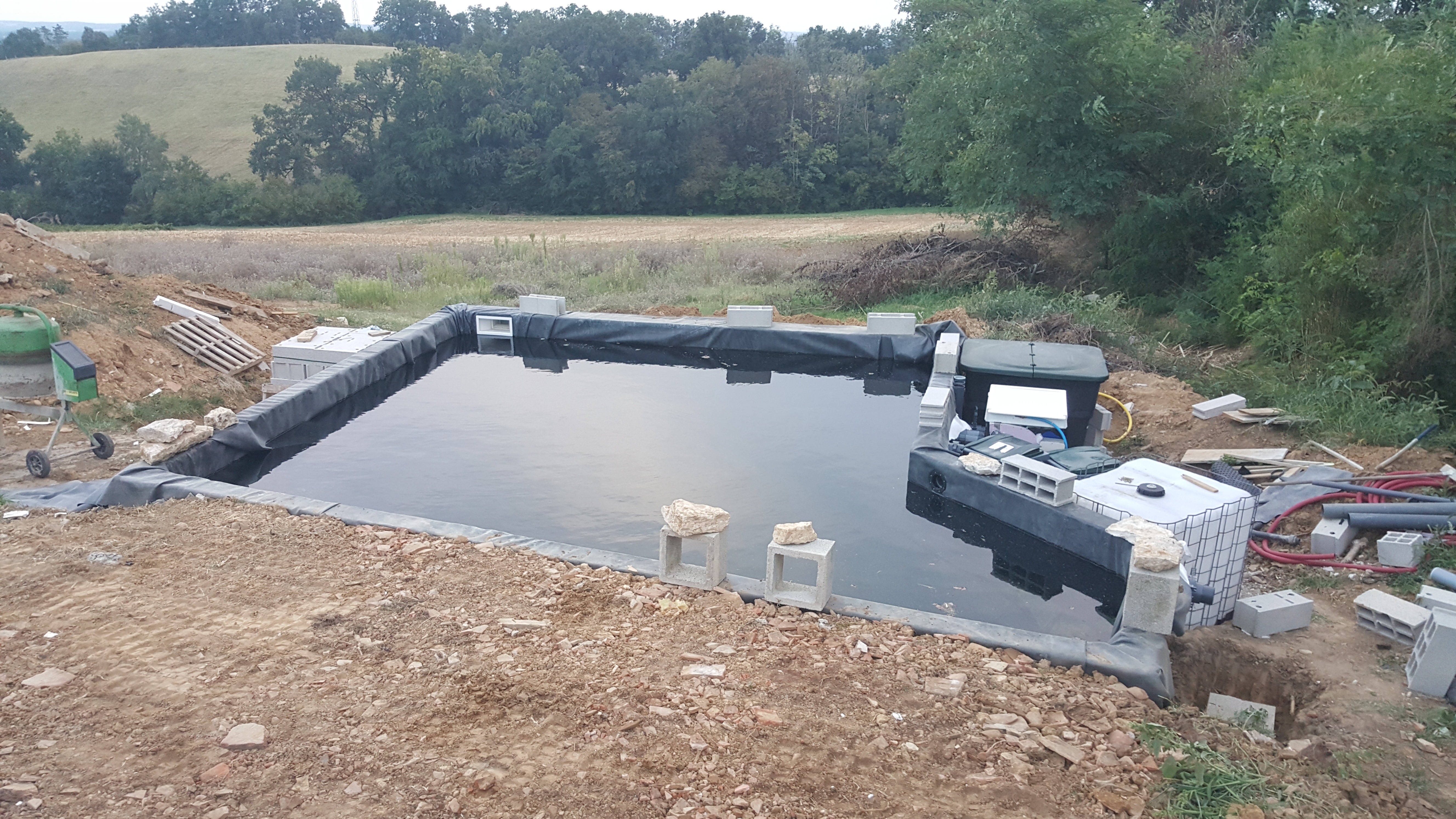 car, dans mon idée, je vais avoir le "mur" avec une légère pente vers l'extérieur, mais je voulais aussi revenir (a plat)au dessus des éléments de filtration .....
