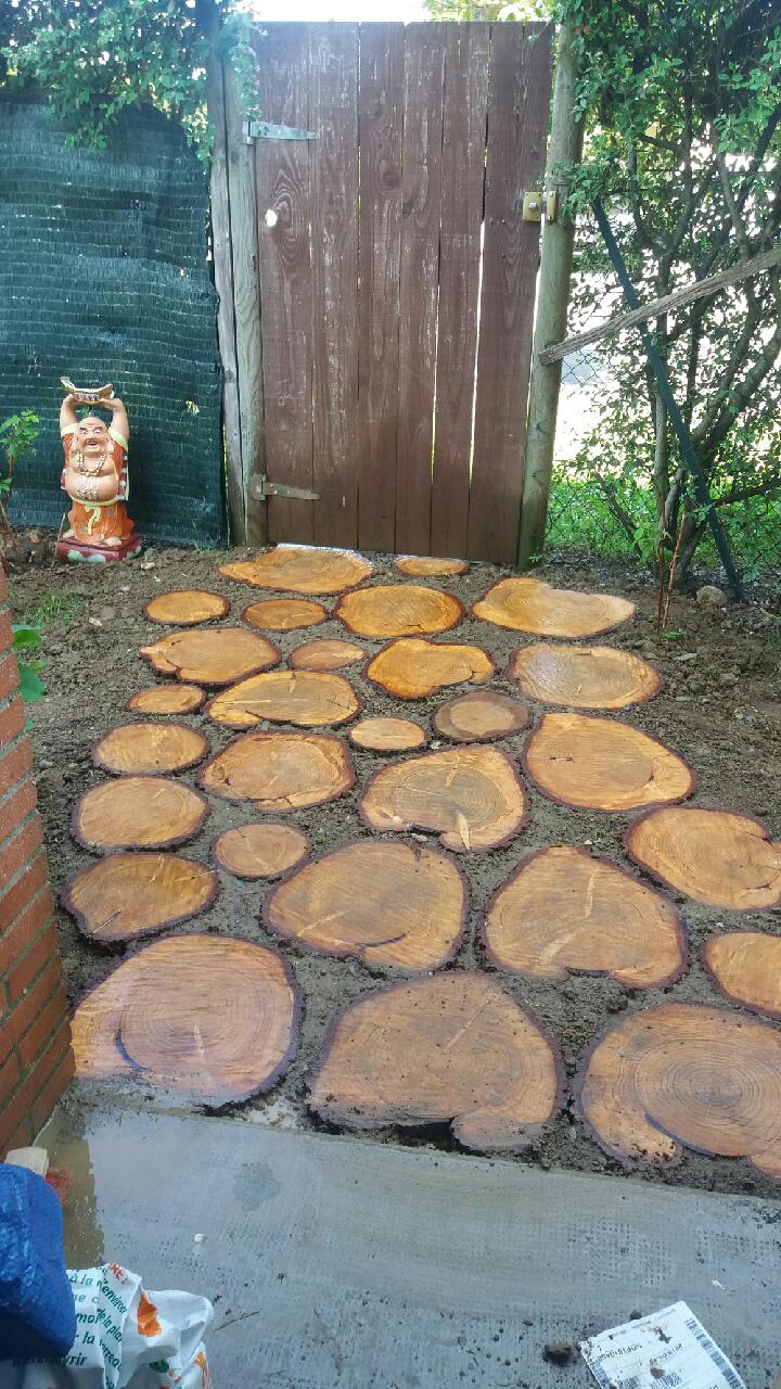 Dans mon jardin, j ai mis des rondins de bois afin de faire un chemin