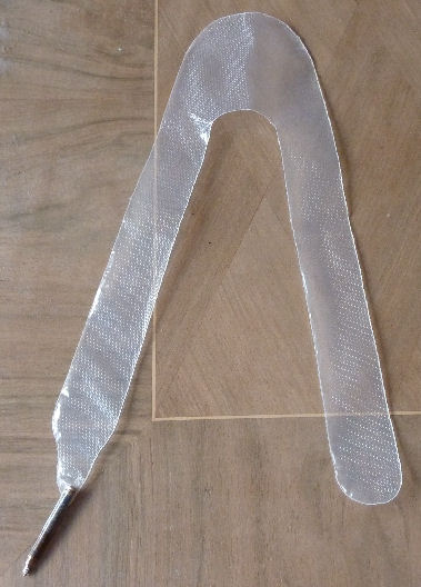 A l’aide d’un patron en carton à la forme de ma pièce, je découpe ma baudruche au fer à souder dans le film alimentaire en plaçant une feuille de papier à cuisson entre le fer et le film (cf photos).