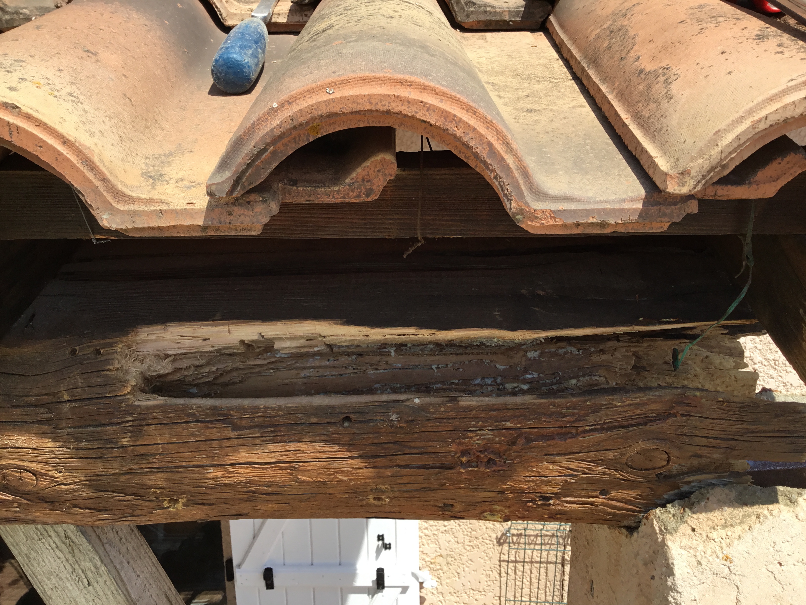 La restauration du reste de la poutre abîmée + le raccordement d’un embout en bois à l’extrémité, au masticolle?