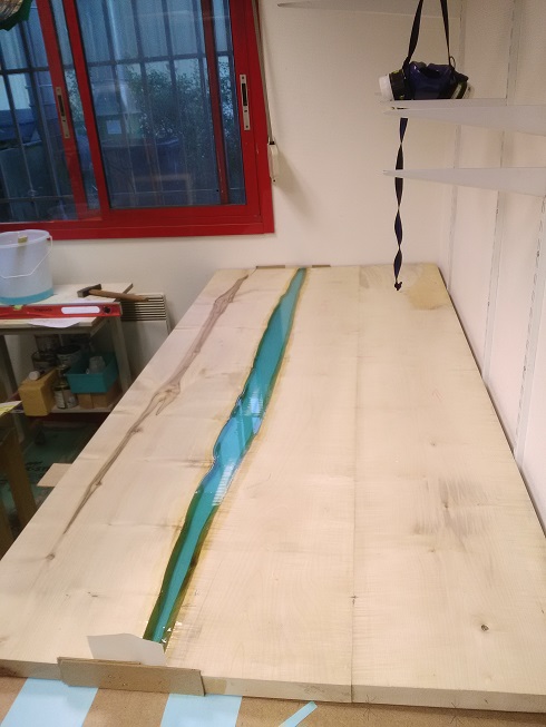Je viens de finir de couler une table rivière en résine Epoxy Inclupox, le résultat est top et la résine a bien fait son boulot.