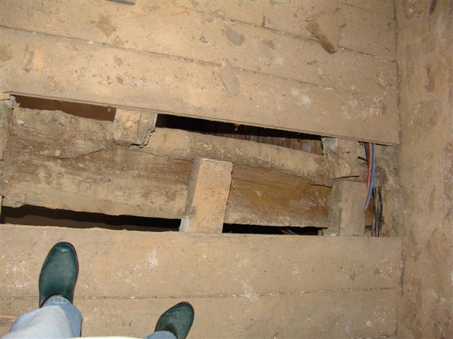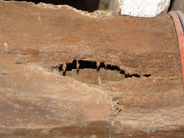 _Renforcer de grosses poutres (30x30cm), dont l’une des extrémités intérieure est rongée par les insectes xylophages, sur une longueur variable d’environ 40 à 50 cm, 10 cm à 15cm de largeur et 10 cm à 15cm de profondeur.