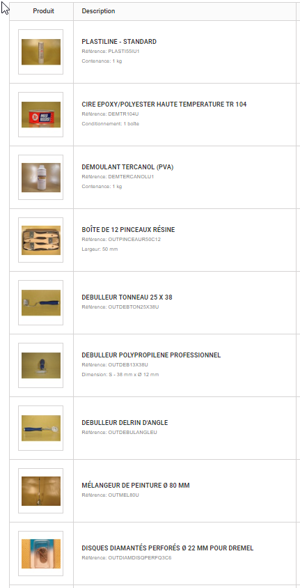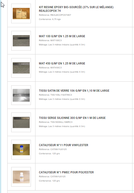 Je n'ai pas tout pris de suite (j'ai de la résine epoxy 15kg que j'ai put récupérer gracieusement mais qui ne me servira qu'a faire des essais)