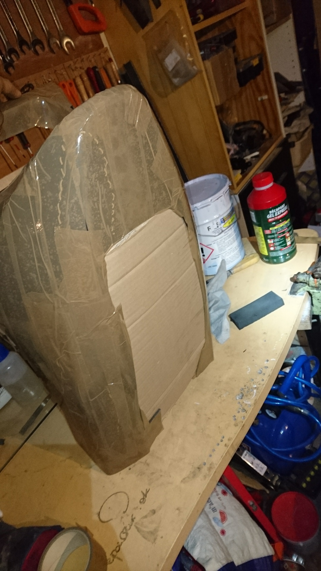 J'ai voulu me fabriquer un sabot pour ma GPZ 500 à partir du sabot d'origine (en ABS, il est tout abimé), en moulant par dessus. Je me suis donc servi du sabot d'origine comme mannequin du coup si je me trompe pas.