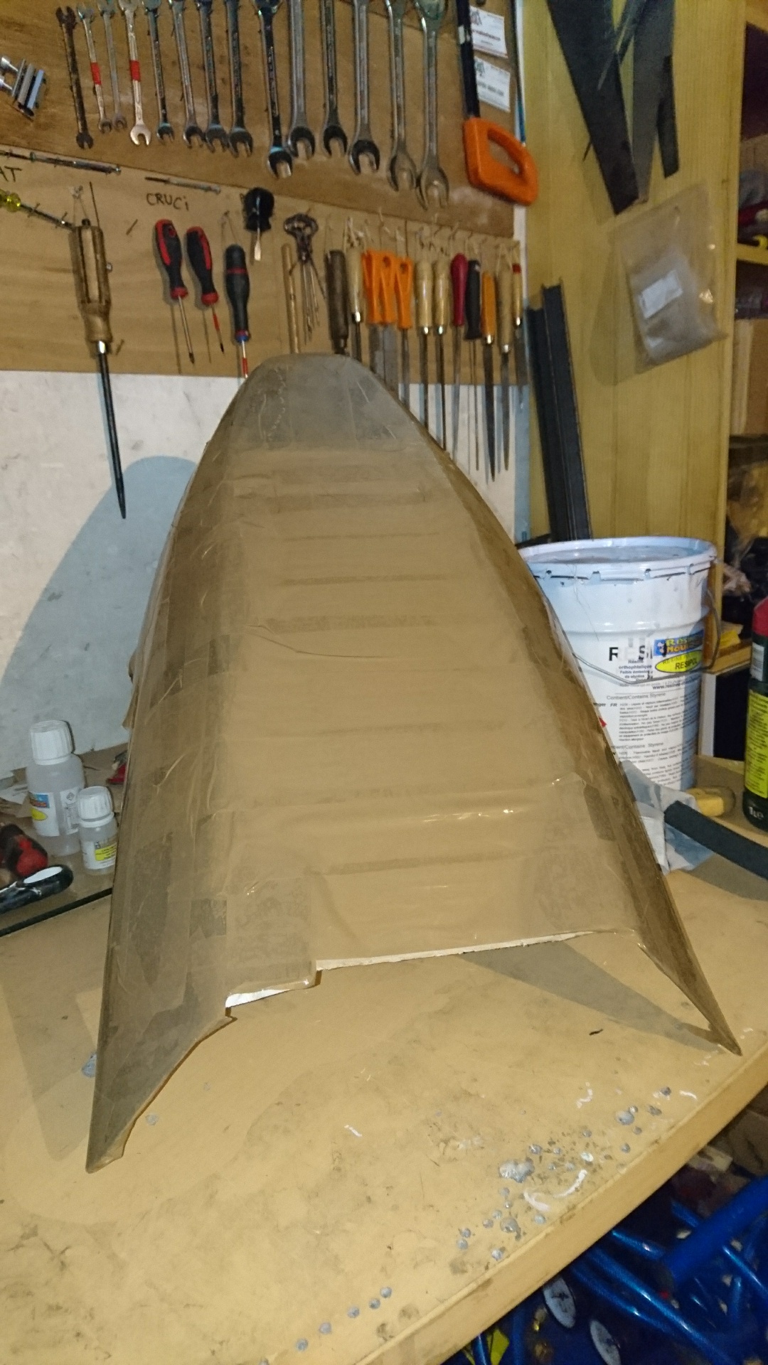 C'est un peu un test ce sabot! Je sais bien que mon stratifié sera tout pourri niveau résistance à cause des conditions de polymérisation, mais bon pour un sabot...