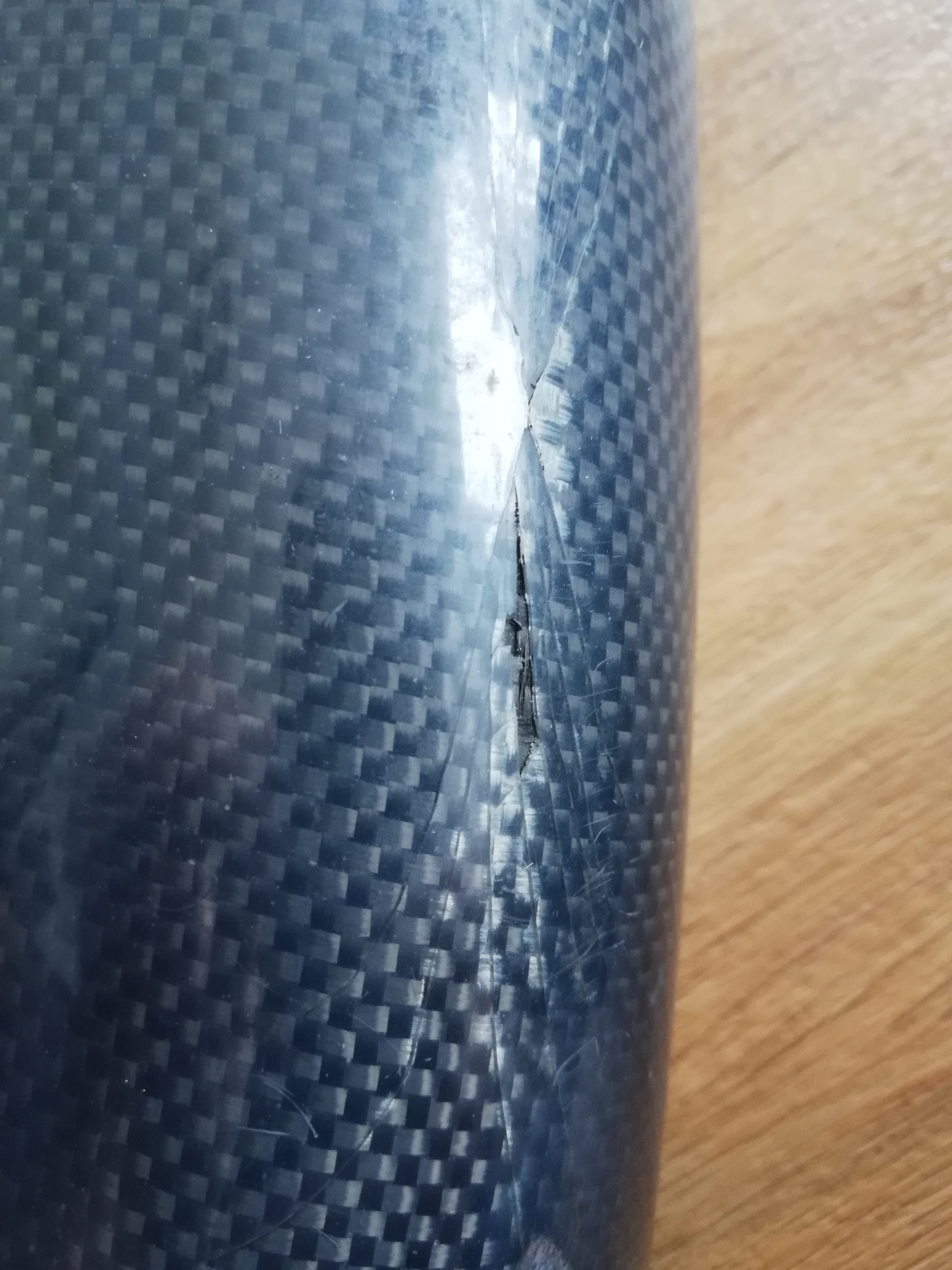Je peux me tromper mais à priori ce n'est pas un choc qui a pu décoller le mastic de liaison, le carbone aurait explosé avant.