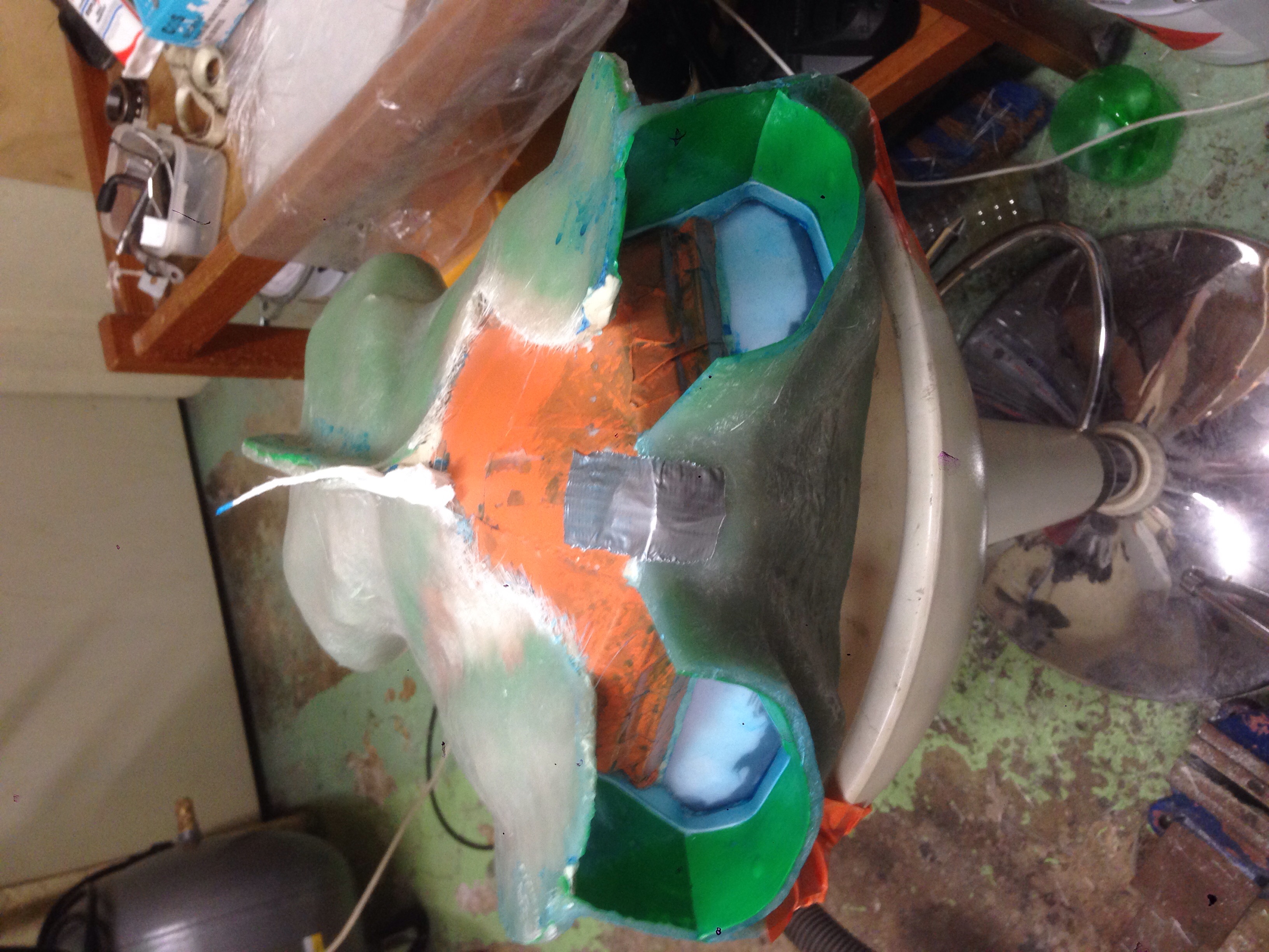 Hier apres avoir appliqué une couche de gelcoat de moule vert , il y a une grosse "bulle" qui s'est formé ( entre le master et le gelcoat)