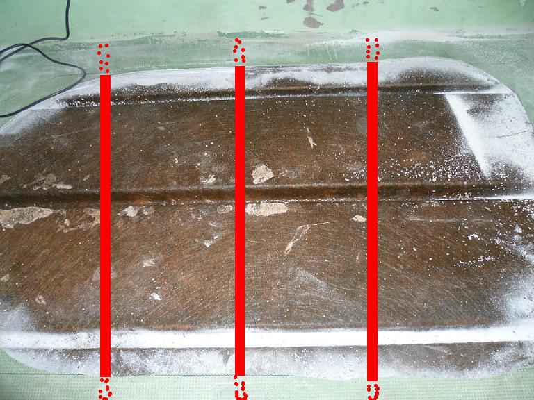 "vous bouchez provisoirement la fente côté extérieur pour éviter les coulures. Ensuite il faudra effectuer la même chose côté extérieur mais on n'y est pas"