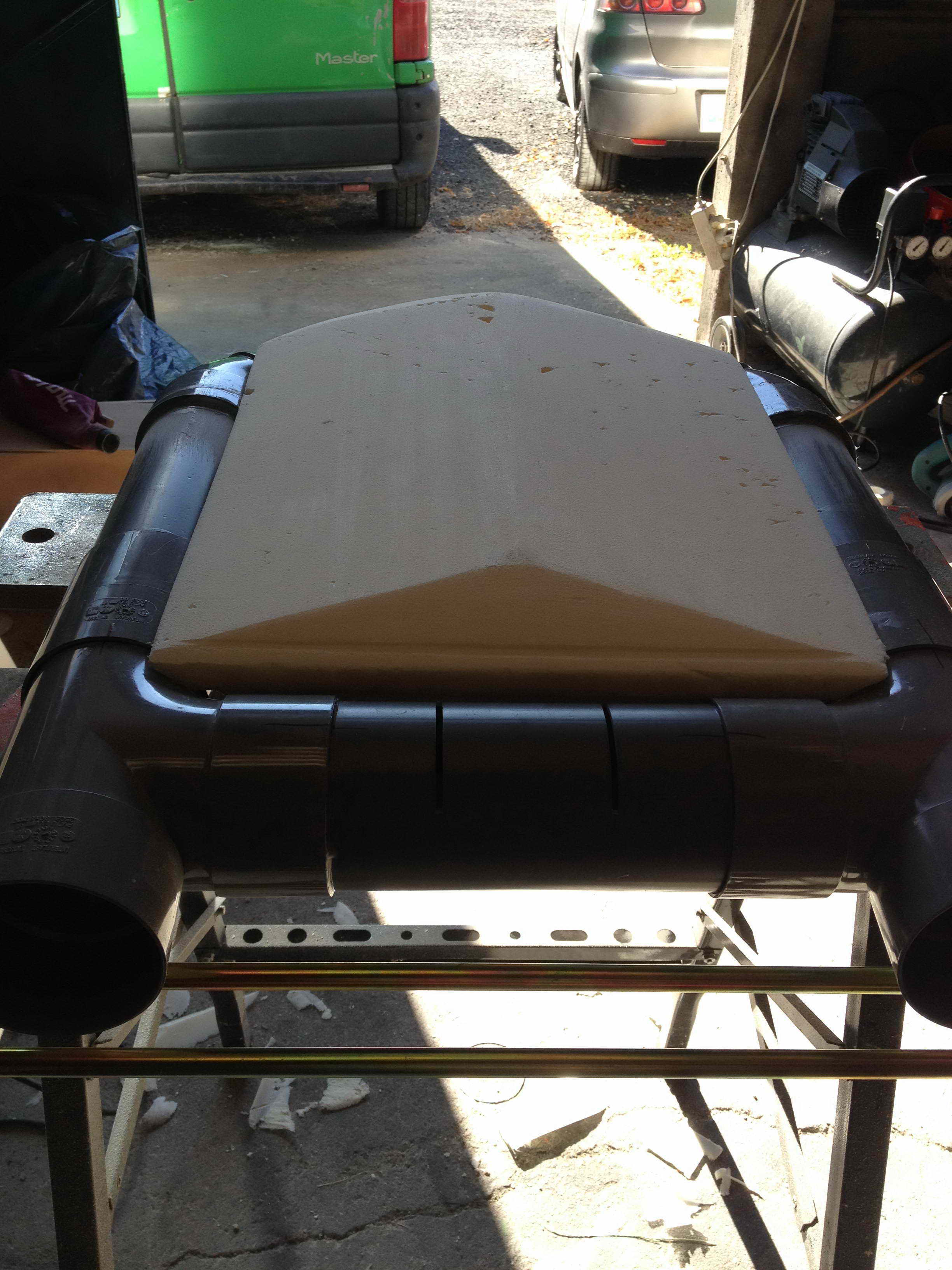 alors j'ai fait une ossature en pvc 80 et a l'interieur j'ai mis du polystyrene extrudé pour avoir la forme grosso modo